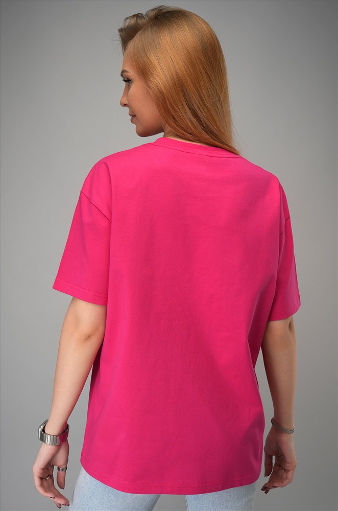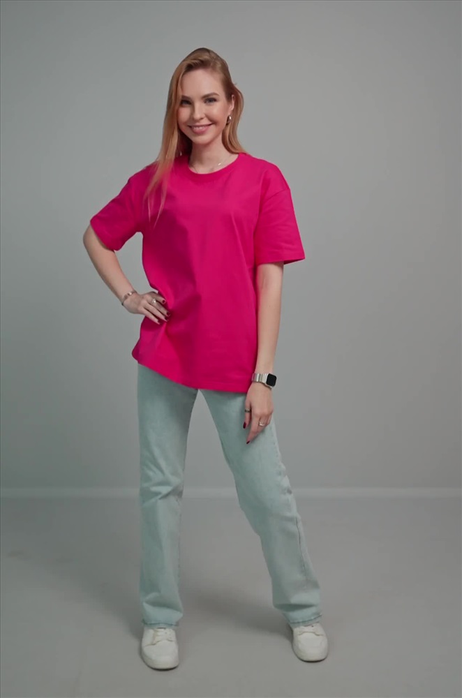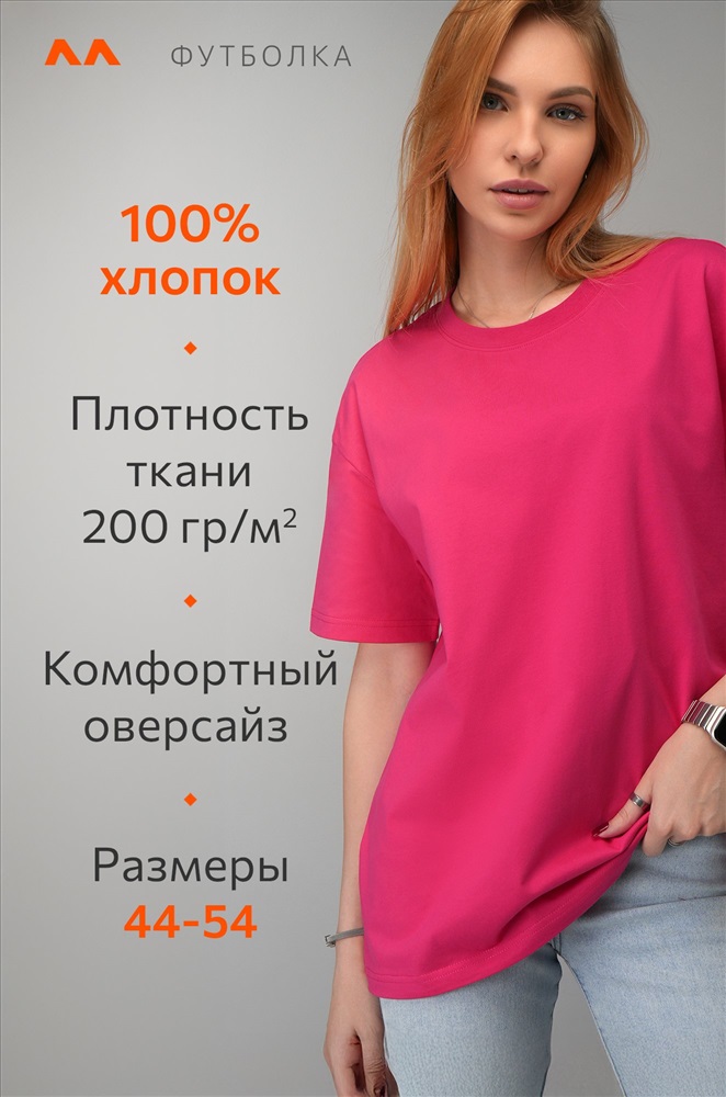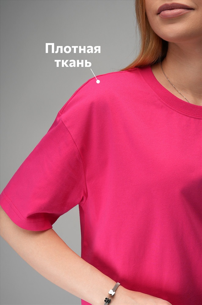 Свободная и такая освежающая! Розовая женская футболка точно знает, как сделать день ярче. Плотный хлопок, мягкий трикотаж и расслабленный оверсайз создают безупречный союз для лета и не только.Преимущества: