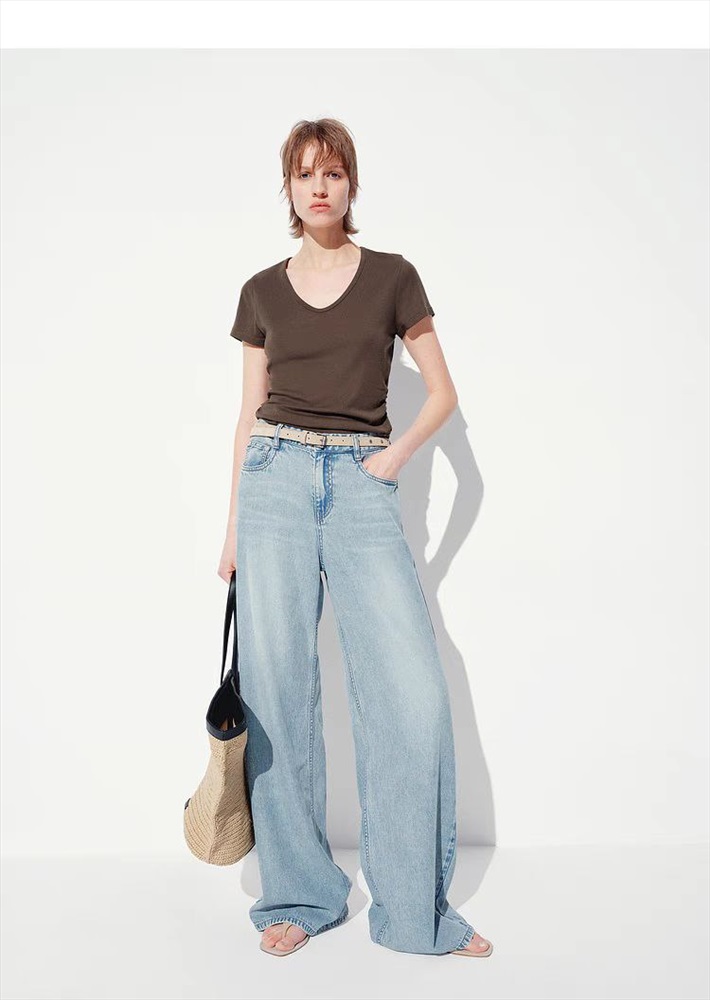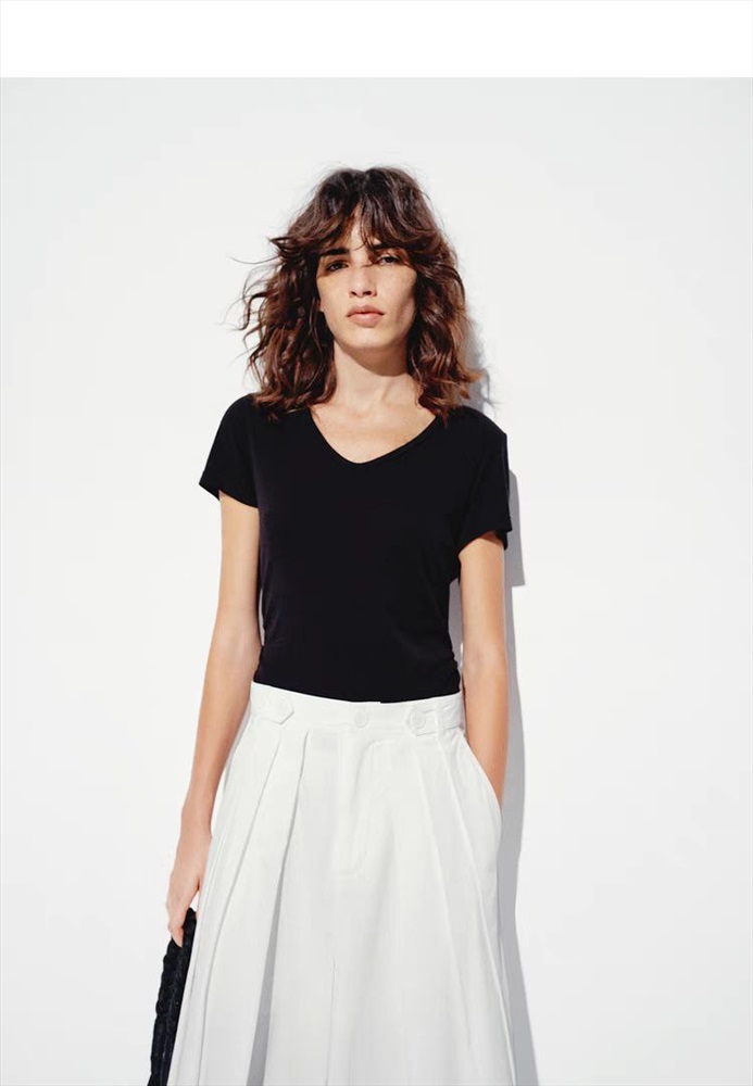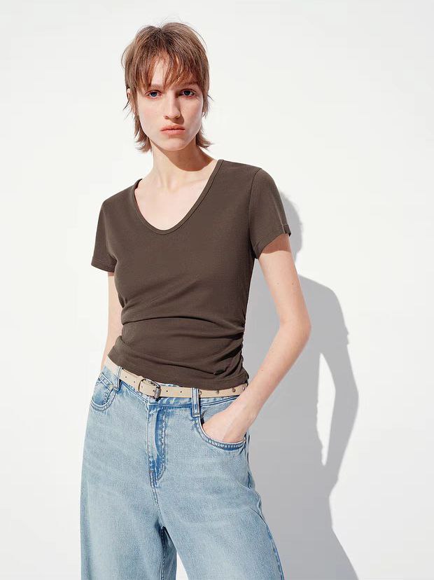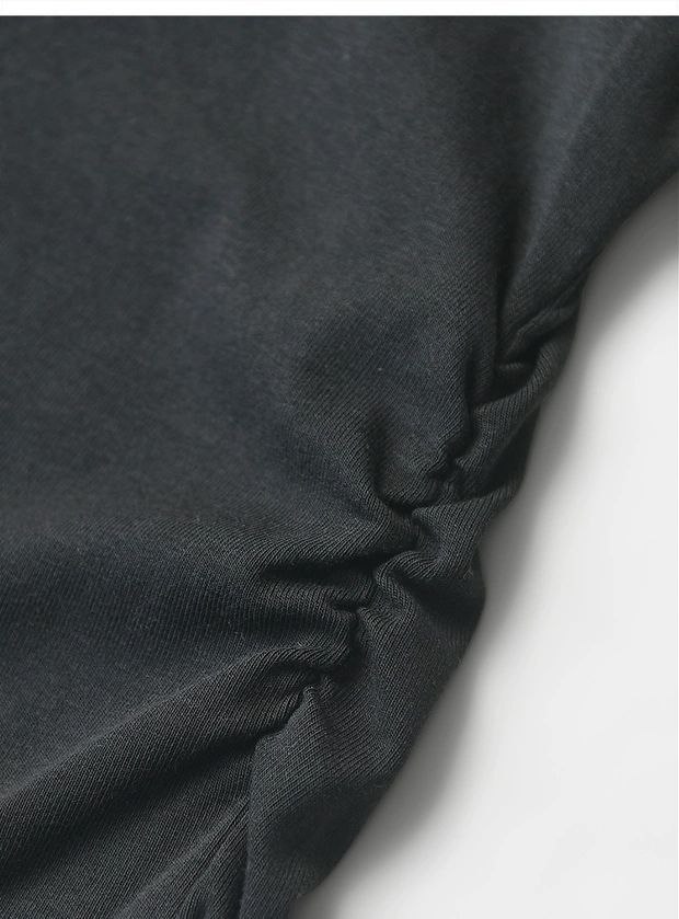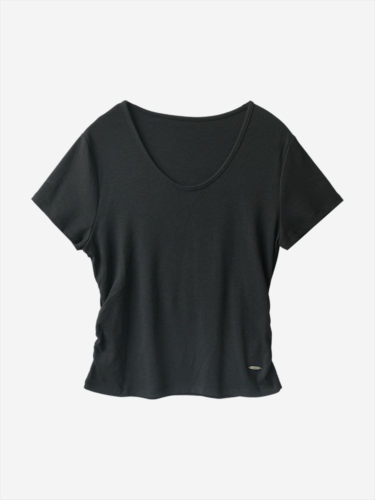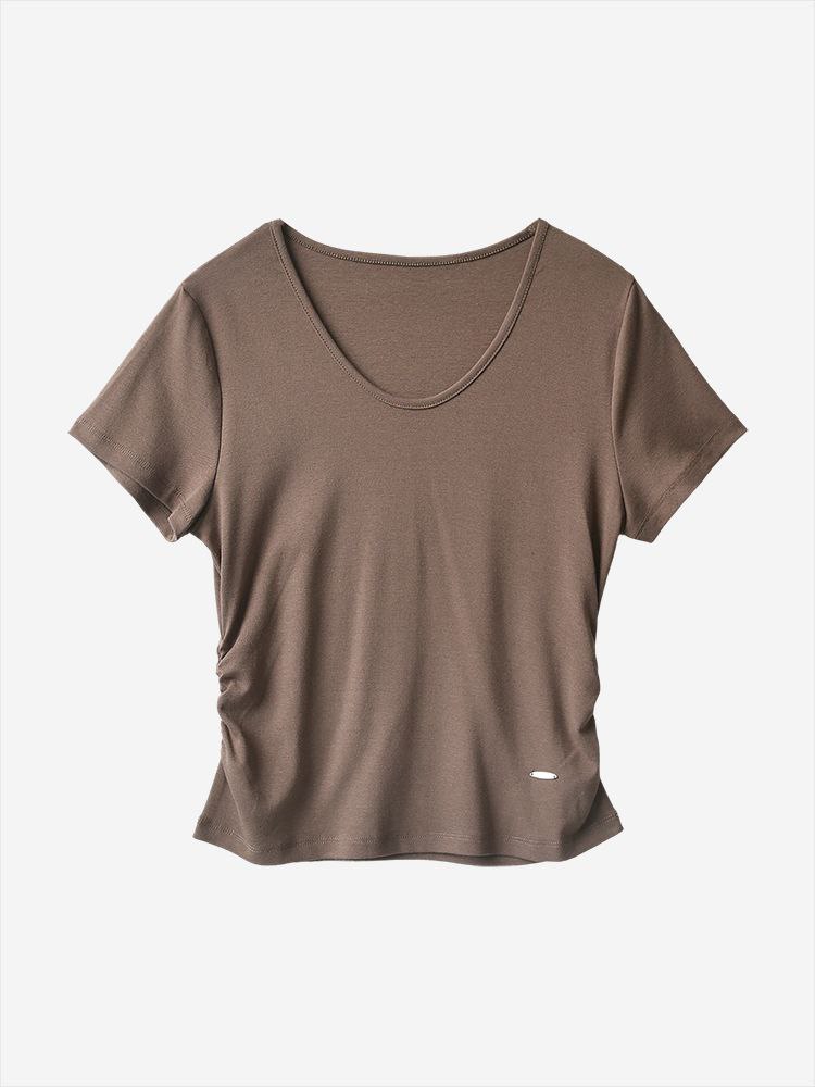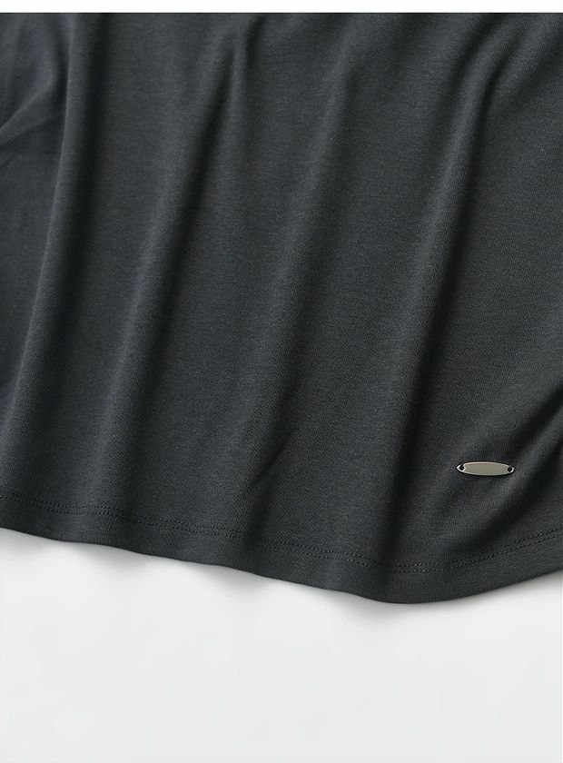 Женская короткая футболка со сборкой по бокам из смесового тенселя MO&C*o ОРИГИНАЛ!