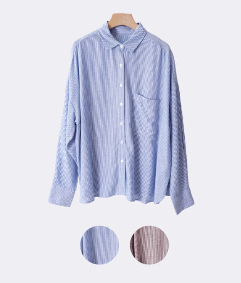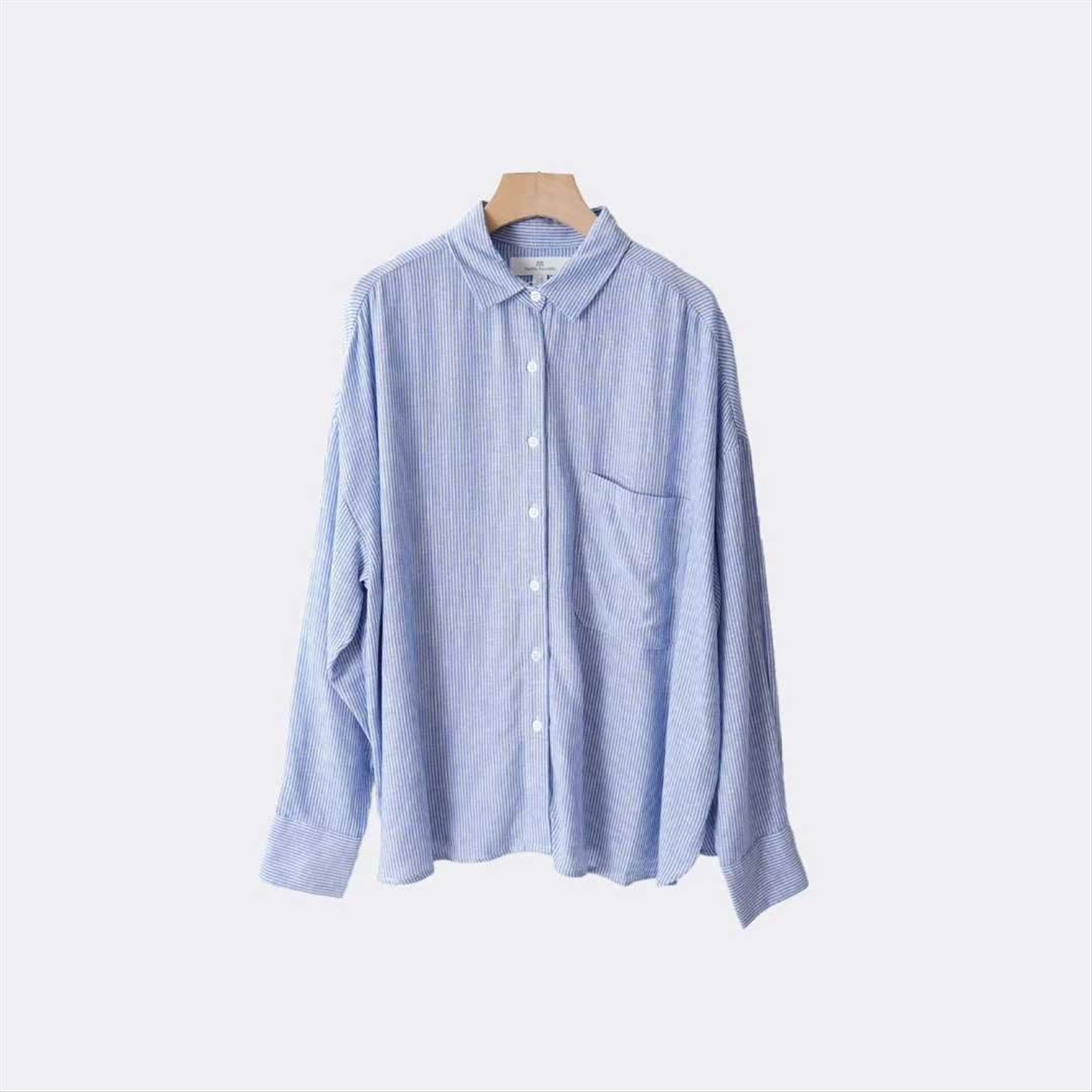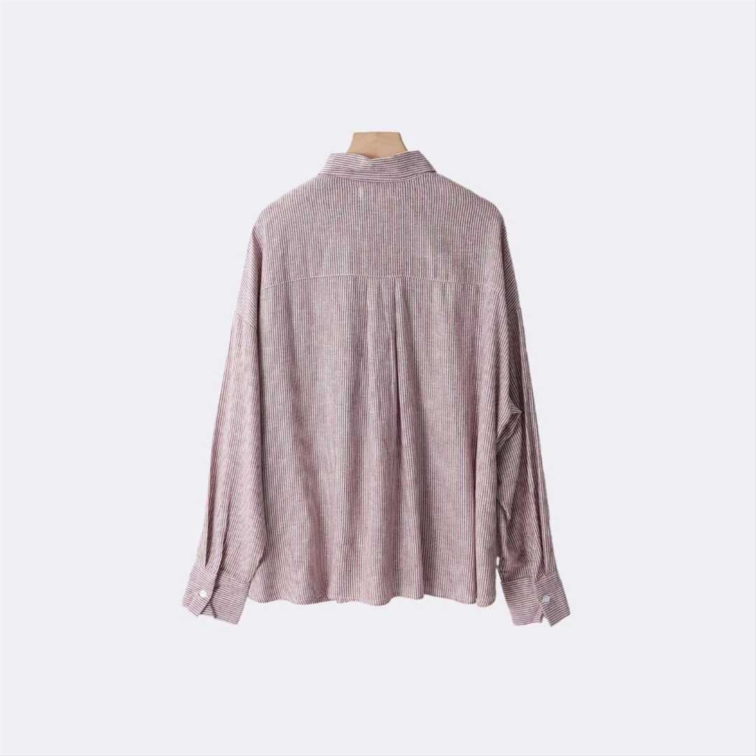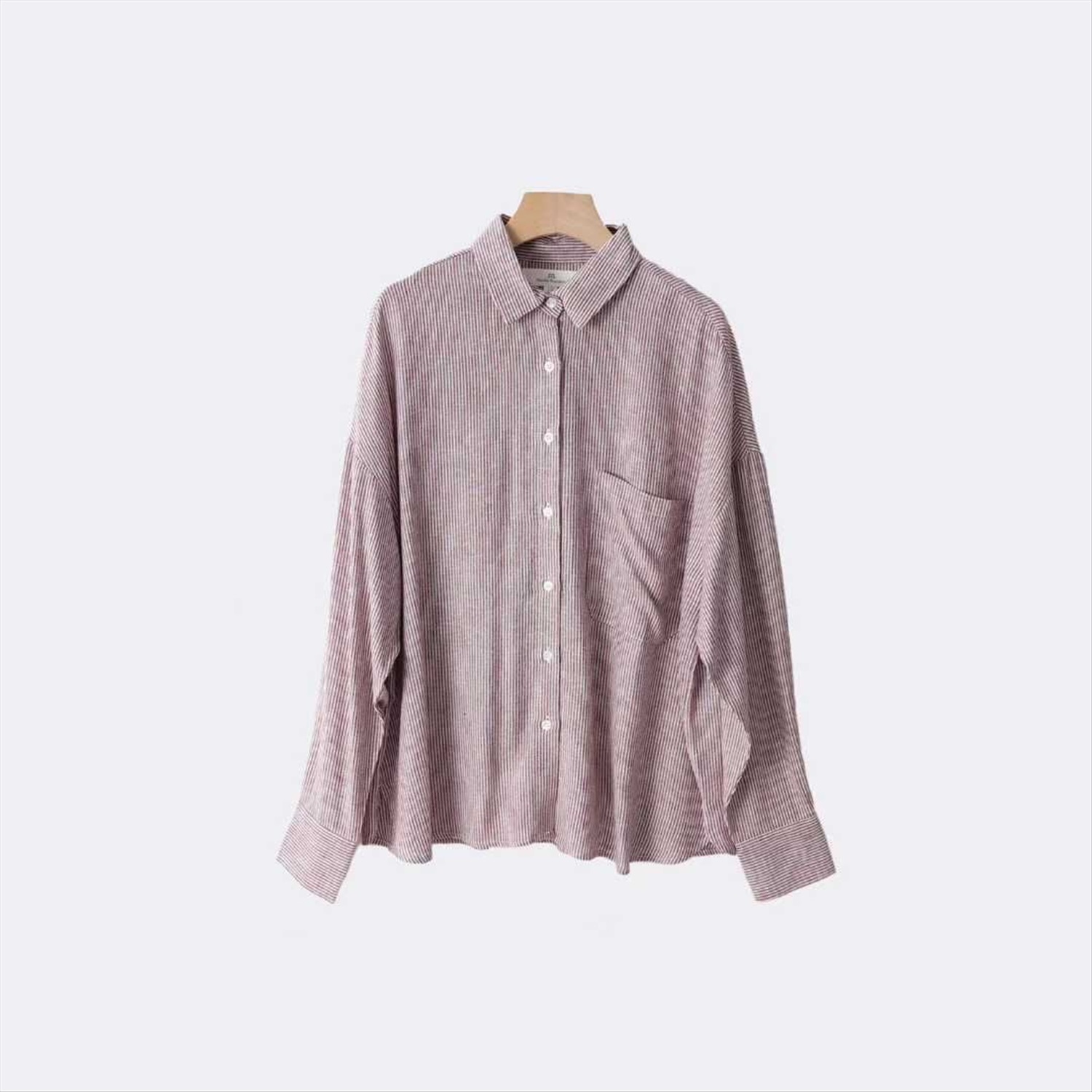 Женская рубашка свободного кроя из льняной смеси в вертикальную полоску