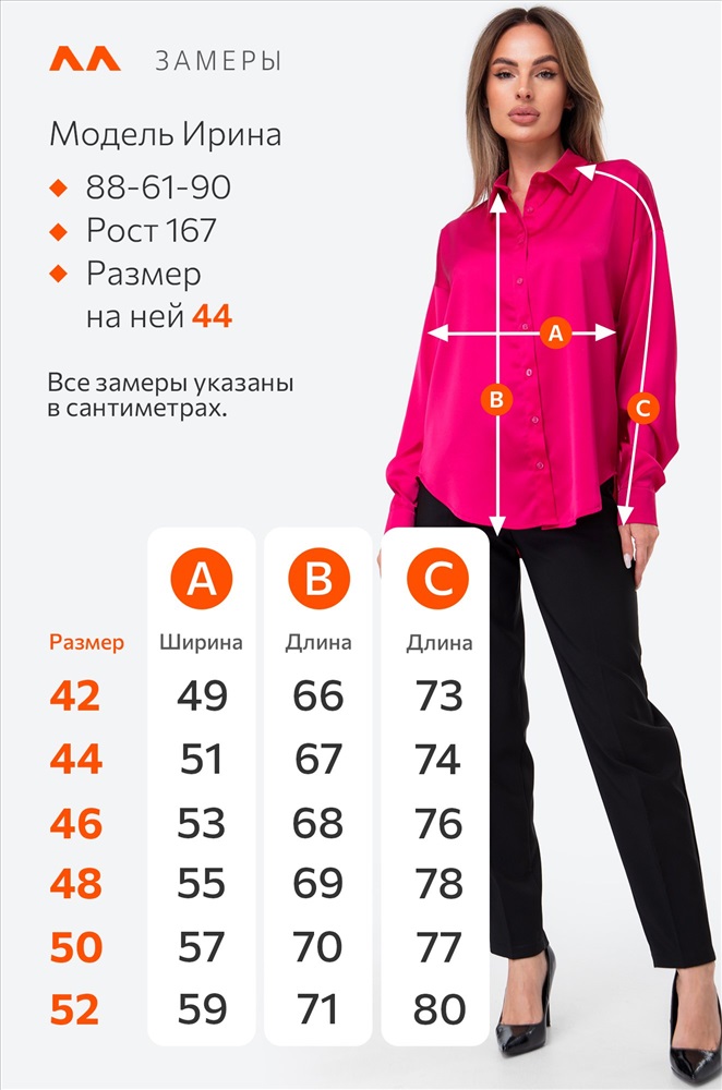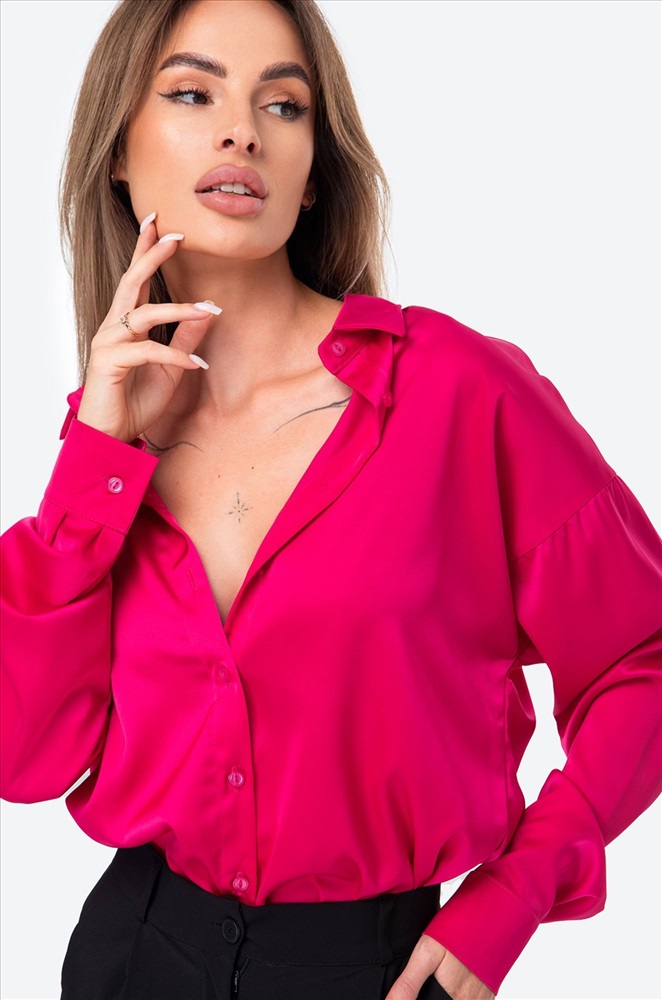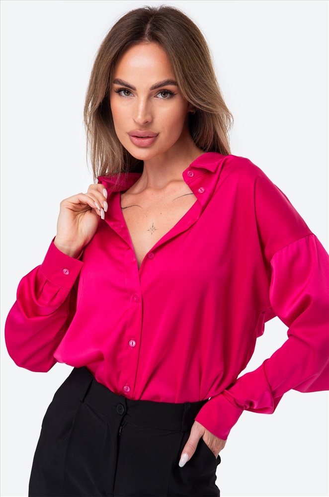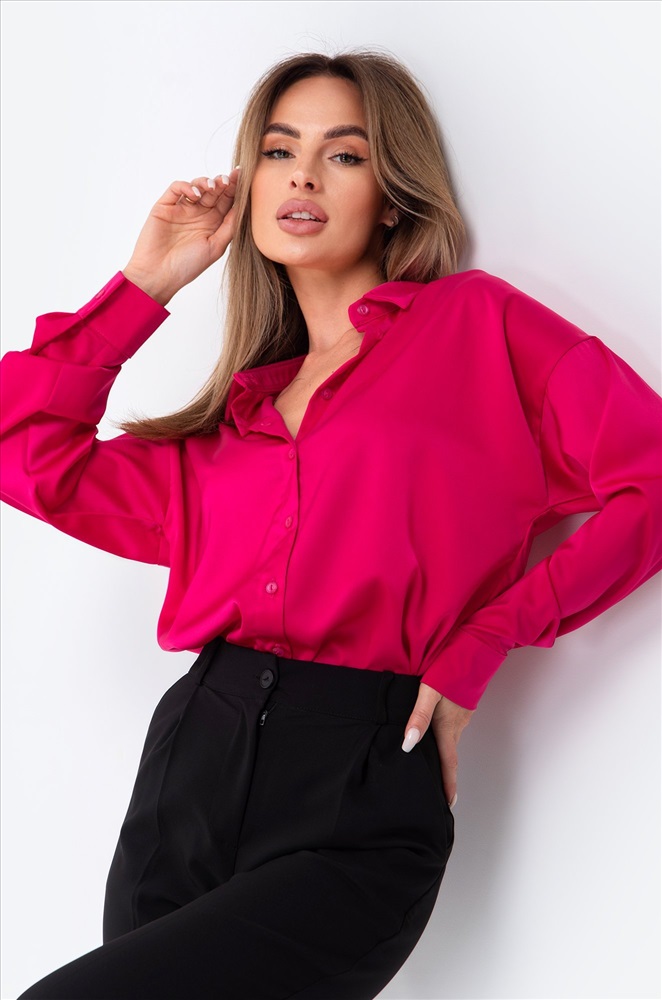 Элегантная женская блузка оверсайз с длинным рукавом выполнена из качественной ткани японский шелк. Благодаря широкому размерному ряду и свободному крою однотонная рубашка цвета фуксии позволит чувствовать себя женственно и уверенно девушкам с любым типом фигуры. Шелковая ткань приятна к телу, прочная, практически не мнется. За счет особого плетения поверхность блестящая, мягкие струящиеся складки красиво переливаются на свету. Розовая блузка для женщин застегивается на перламутровые пуговицы в тон. Прямой крой не сковывает движения, в ней будет комфортно в течение всего дня. Благодаря универсальной длине рубашку oversize удобно заправлять, носить навыпуск или завязывать на талии. Женская блузка станет прекрасной основой для строгих образов в классическом стиле, подходит для работы в офисе, учебы и вечерних выходов. С ней получатся крутые офисные, романтичные, праздничные образы на любой случай. Блузка подойдет для осенних, весенних и летних прогулок. Красивая рубашка поможет разнообразить базовый гардероб. Нарядная блузка дополнит новогодний образ, а также стильная рубашка подойдет на осень, весну или лето. Собери нарядный образ с юбкой арт. HFLF4116. Модель Ирина, ее рост 167 см, параметры 88-61-90 см. На ней рубашка 44 размера.