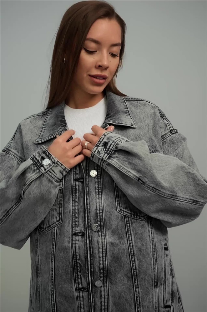 Женская удлиненная джинсовая куртка оверсайз Happyfox