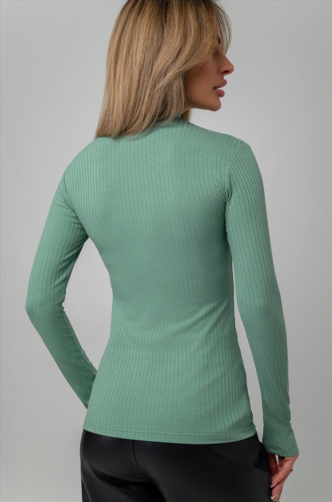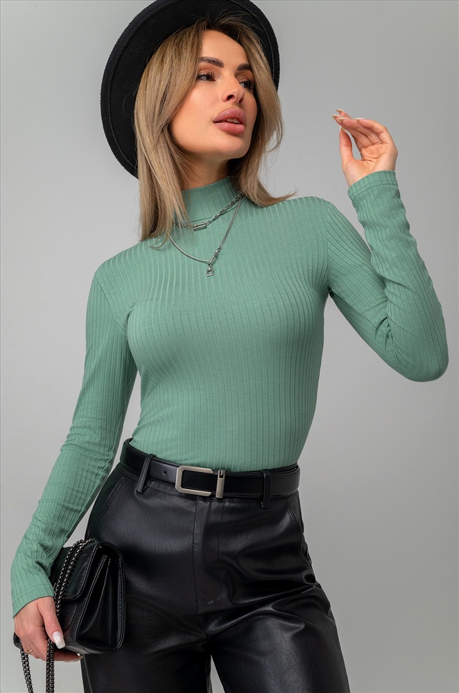 Пыльно-зеленая водолазка с длинными рукавами дополнена воротником-стойкой, который деликатно обрамляет шею. Облегающая посадка по фигуре продемонстрирует твои шикарные изгибы. Трикотажный бадлон поможет создать образ в офисном стиле. Однотонная водолазка — классный вариант для прогулок. Водолазку можно носить самостоятельно или в качестве основы многослойного образа – выбор только за вами! Модель Ирина, рост 167 см, параметры 84-58-87 см. На ней размер 44.