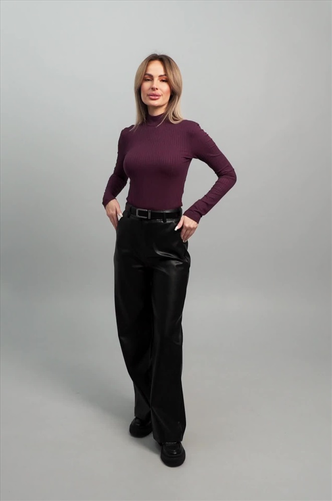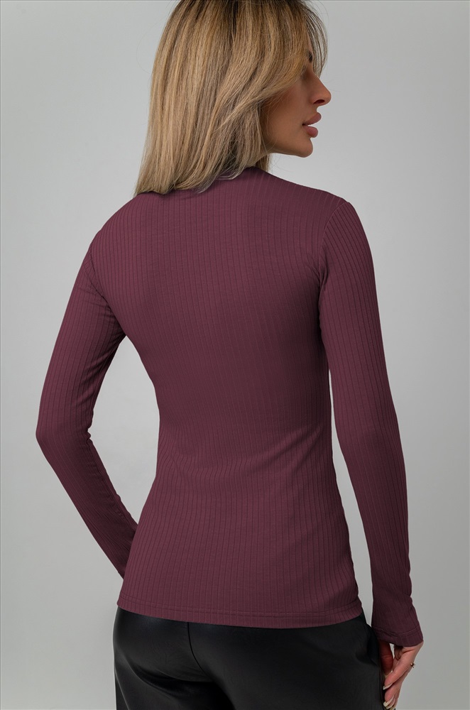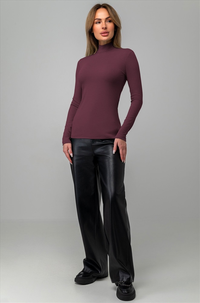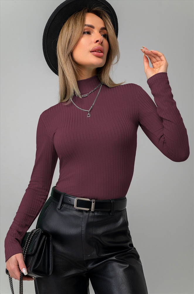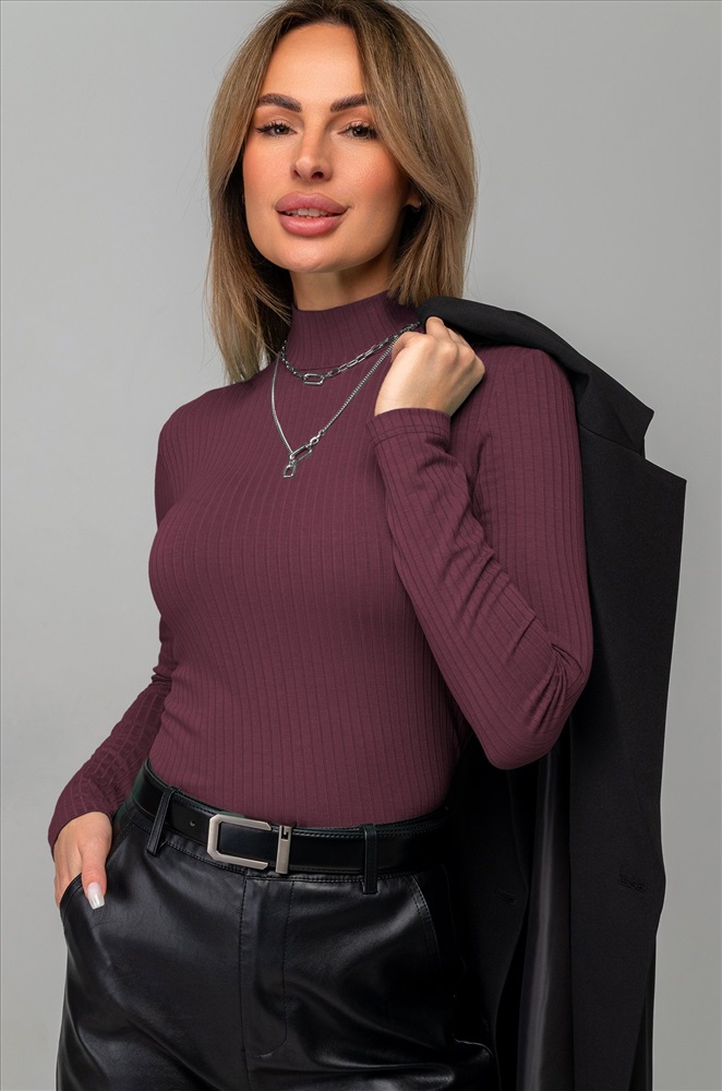 Бордовая водолазка с длинными рукавами дополнена воротником-стойкой, который деликатно обрамляет шею. Облегающая посадка по фигуре продемонстрирует твои шикарные изгибы.