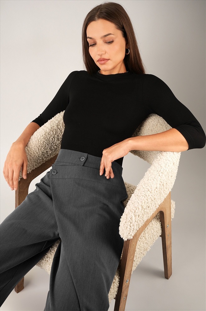 Прямые широкие штаны с высокой талией создают аккуратный силуэт и позволяют чувствовать себя комфортно весь день. Классические офисные брюки станут отличным выбором на осень, для деловых встреч и повседневных образов.