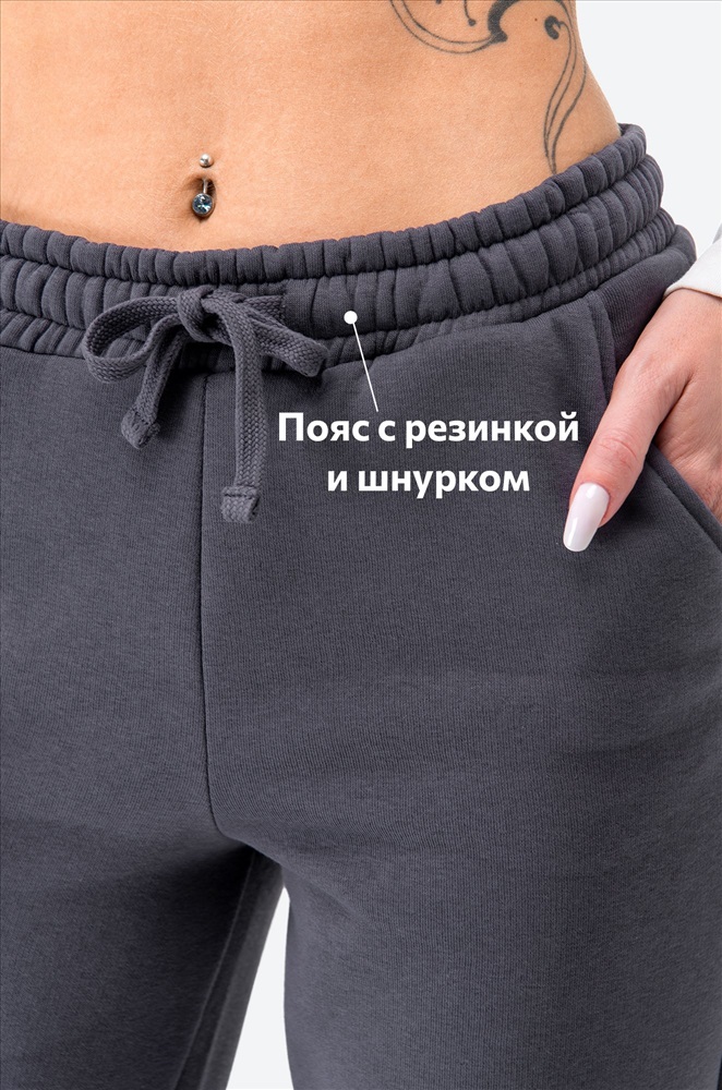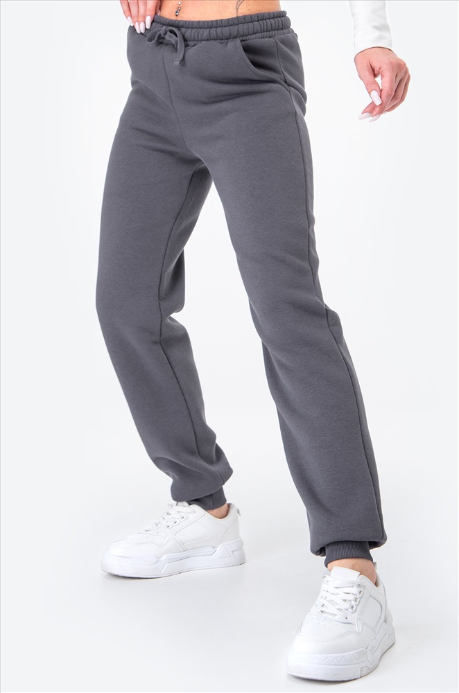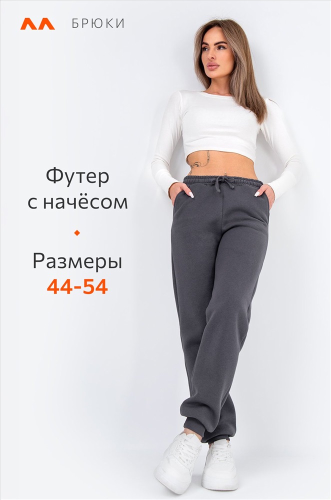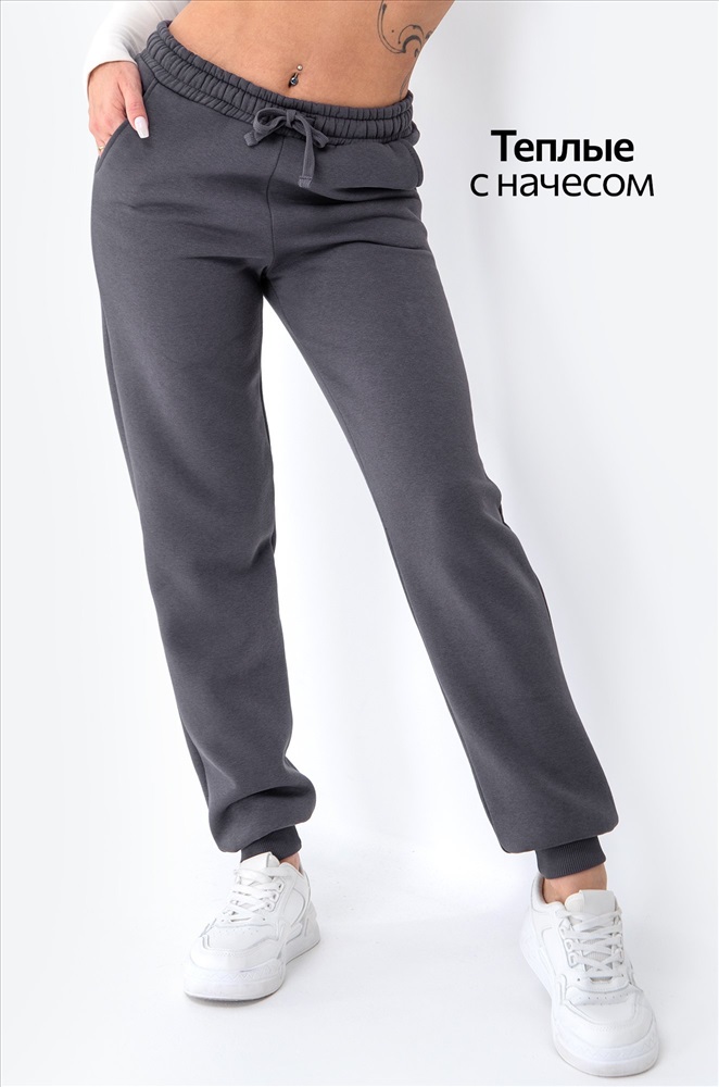 Преимущества: – хлопковый трикотаж с начесом сохраняет тепло; – утепленные, комфортные даже в зимнюю погоду; – эластичный пояс на резинке со шнурком и удобные карманы; – манжеты фиксируют брюки и не дают штанинам задираться. Слегка зауженные к низу брюки делают силуэт аккуратным и стильным. Трикотажные джоггеры прекрасно подойдут для женщин, которым нужны универсальные брюки для осенних прогулок или уютных домашних вечеров. Внимание: размер может идти чуть меньше стандартного, сверяйтесь с таблицей замеров!
