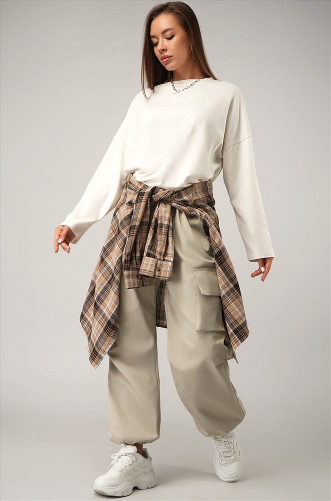 Свободный силуэт оверсайз, средняя посадка и защипы в области колен делают штаны удобными на каждый день, в городе или на прогулке. Женские джоггеры базового бежевого цвета подойдут и для подростков: стильные, практичные и такие же универсальные, как любимые подростковые спортивные штаны.