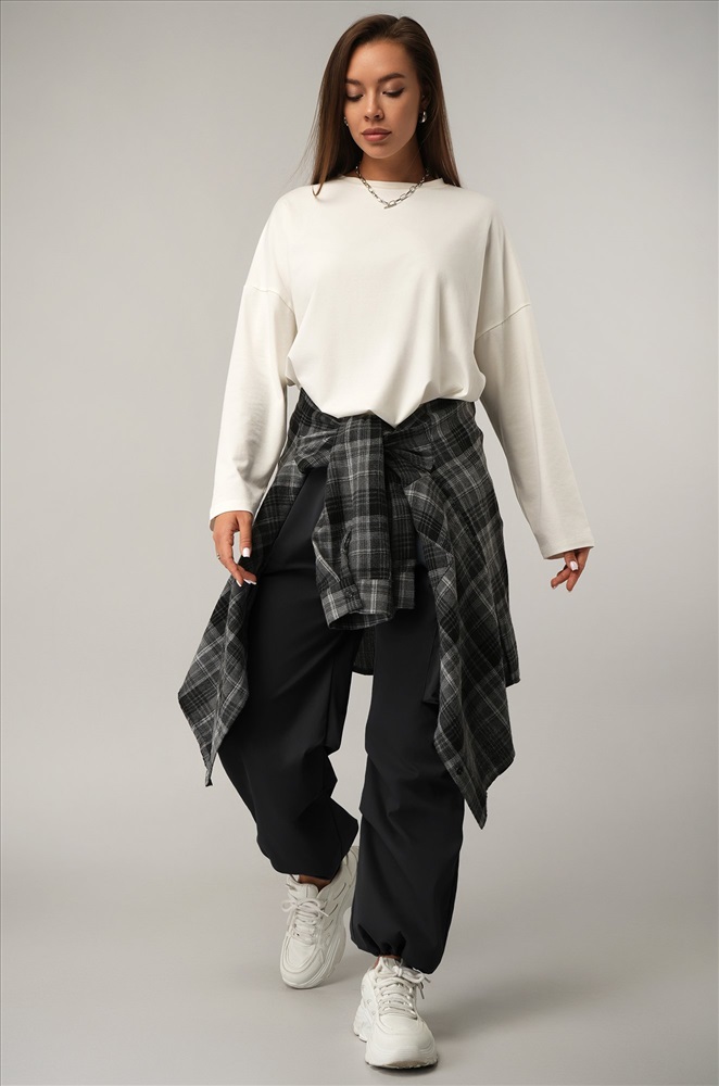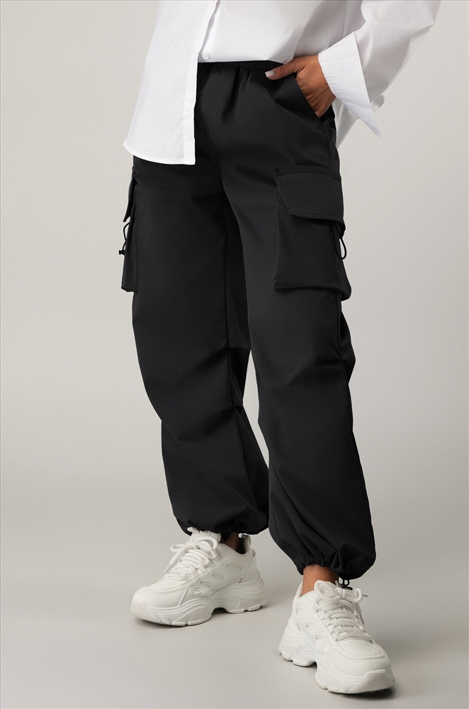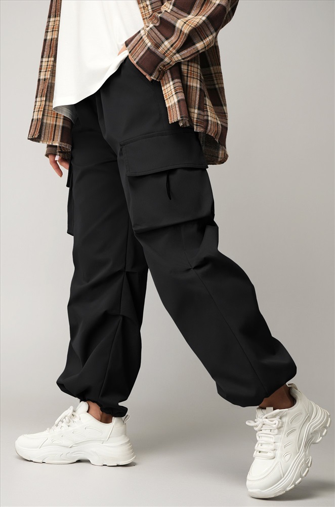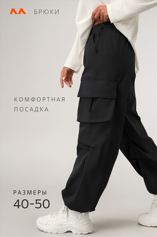 Преимущества: – плотная ткань с непродуваемым эффектом; – утяжка по низу со стопперами для удобства; – практичные накладные карманы карго; – универсальная однотонная палитра; – комфорт при температуре до +5 °C. Свободный силуэт оверсайз, средняя посадка и защипы в области колен делают штаны удобными на каждый день, в городе или на прогулке. Женские джоггеры базового черного цвета подойдут и для подростков: стильные, практичные и такие же универсальные, как любимые подростковые спортивные штаны. Рост модели 170 см, параметры: объем груди 88, объем талии 67, объем бедер 97. На ней размер 42.