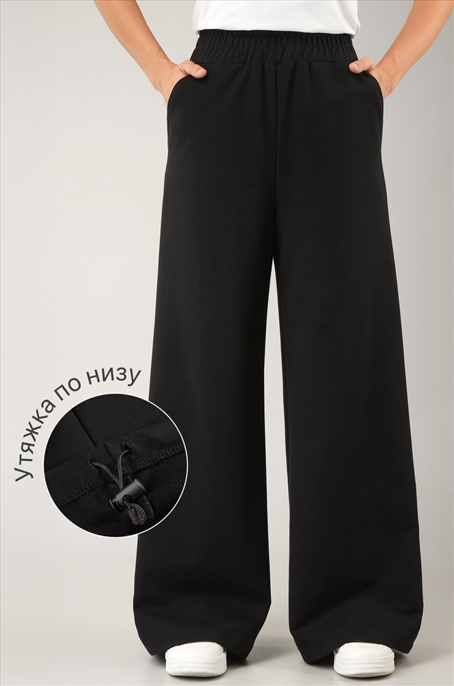 – утяжка со стопперами по низу позволяет легко превратить брюки палаццо в джоггеры;
