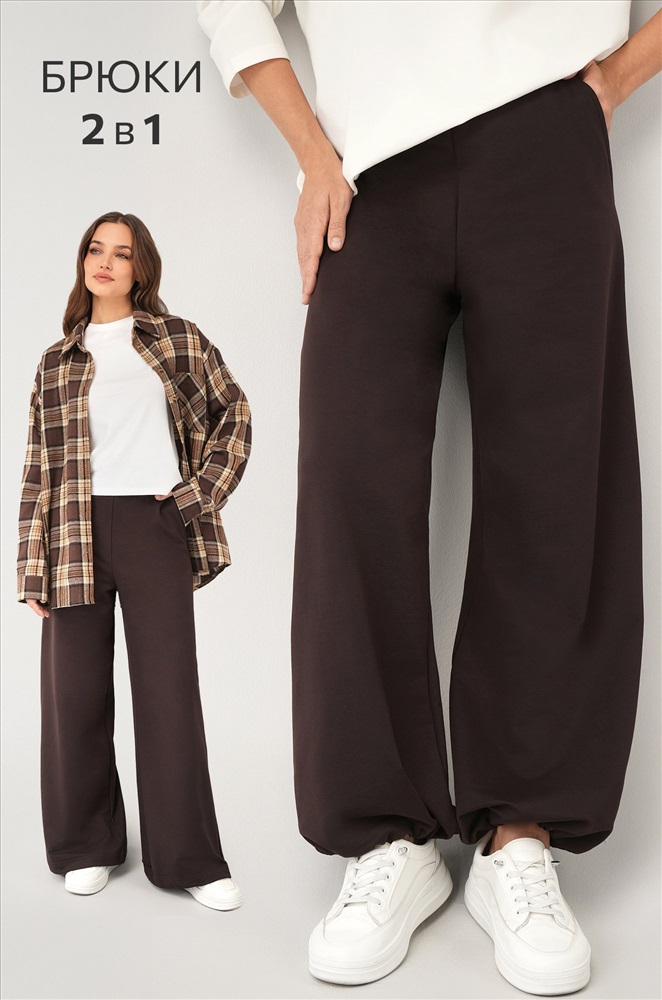– утяжка со стопперами по низу позволяет легко превратить брюки палаццо в джоггеры;