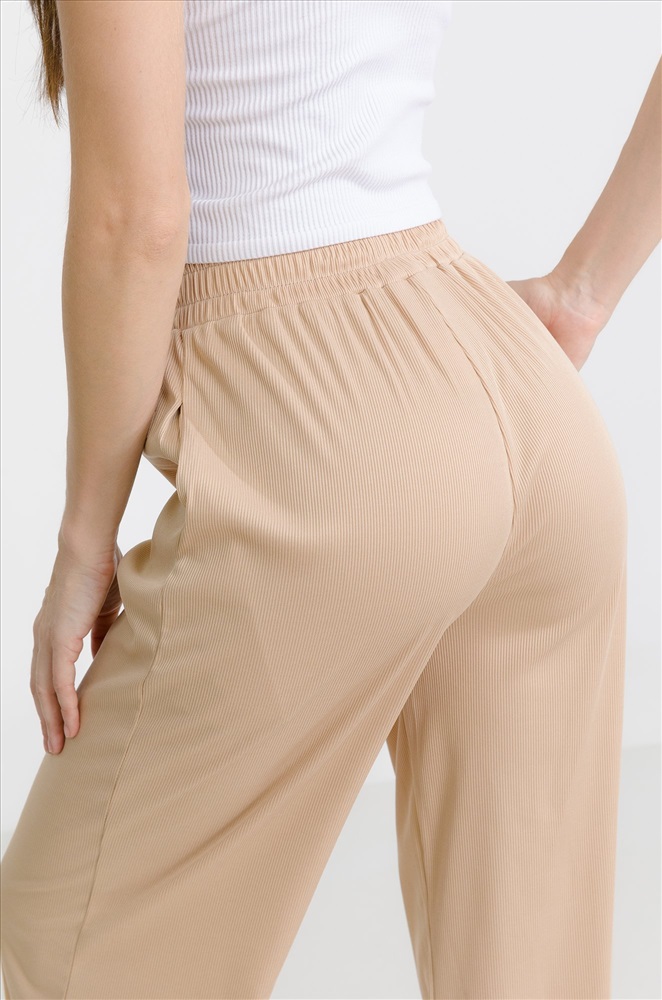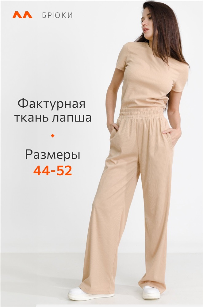 Женские брюки в рубчик выполнены из фактурной ткани лапша с добавлением вискозы – лучший вариант в летнюю погоду! Ткань легкая и прочная, прекрасно пропускает воздух.