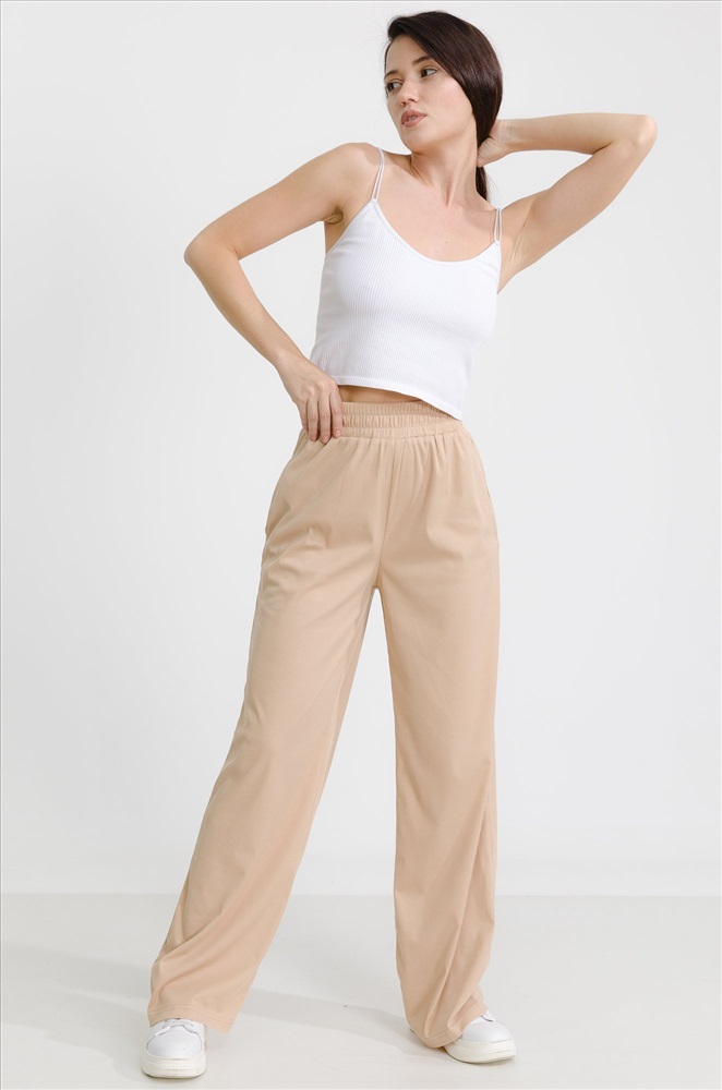 Брюки с завышенной талией – базовая модель для любого стиля. Однотонные бежевые брюки прекрасно сочетаются с любым верхом.