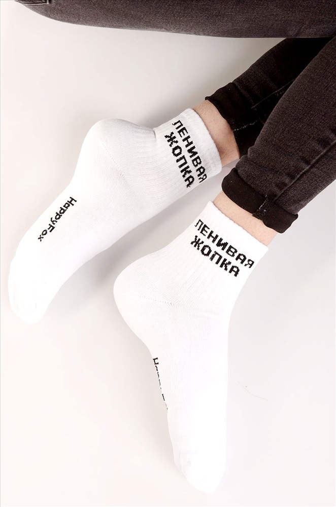 Бренд: Happyfox Серия: Happyfox- Носки с надписями Страна: Россия Состав: 80% хлопок, 3% эластан, 17% полиамид Цвет: ленивая.жопка.белый