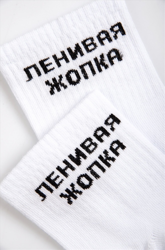 Подними настроение себе и окружающим! Классические белые носки с прикольной надписью выполнены с высоким содержанием хлопка. Демисезонные носки с широкой резинкой подойдут для женщин, девушек и подростков.