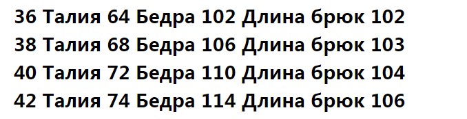 36 Рекомендуемый вес 42-50 кэтти 38 Рекомендуемый вес 50-62 кг 40 Рекомендуемый вес 57-62 кг 42 Рекомендуемый вес 62-67 кг