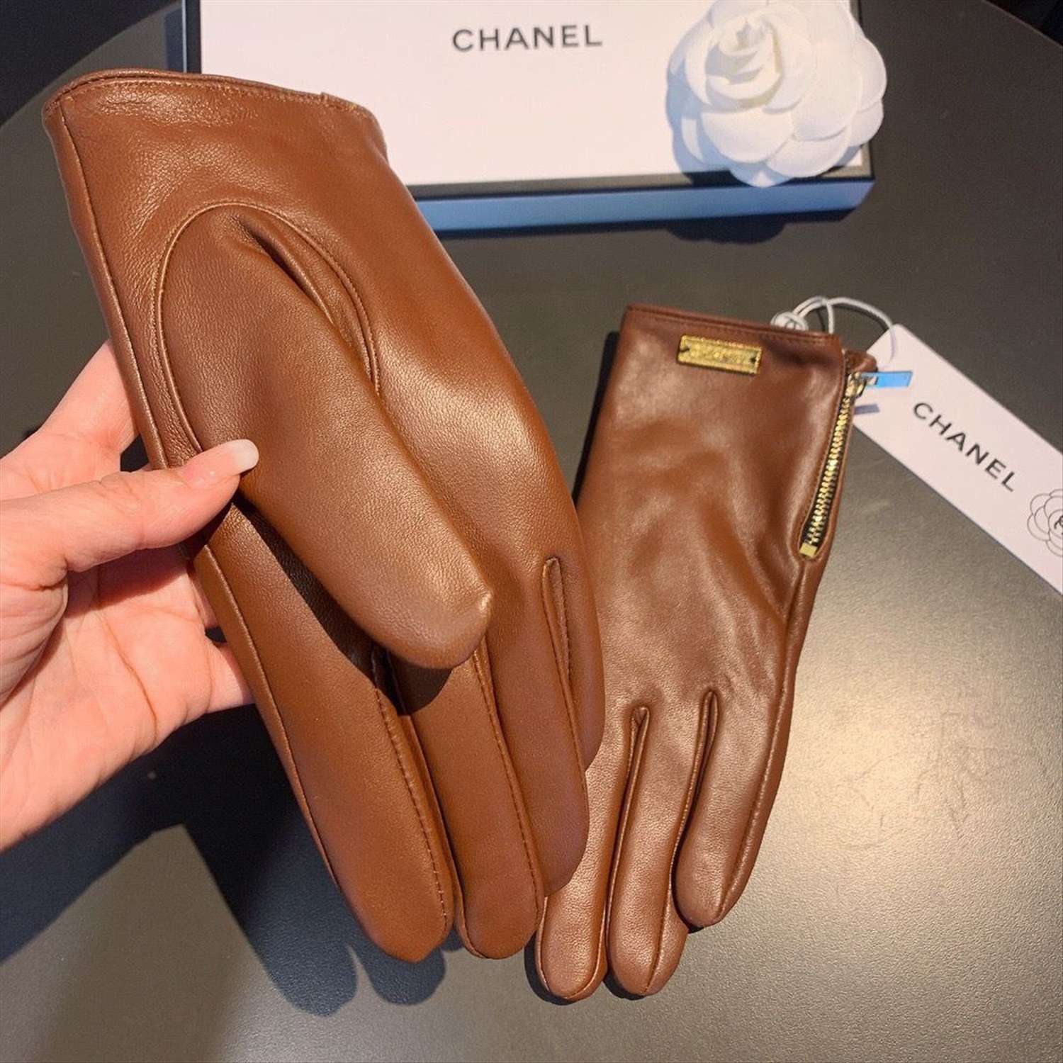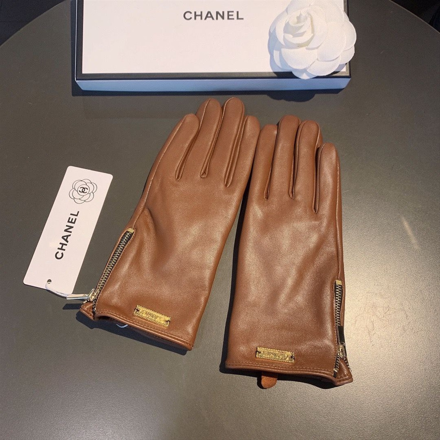 Женские утепленные кожаные перчатки Chane*l