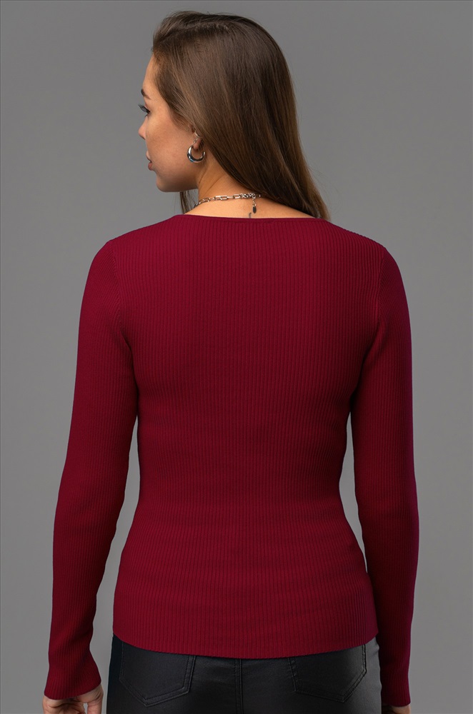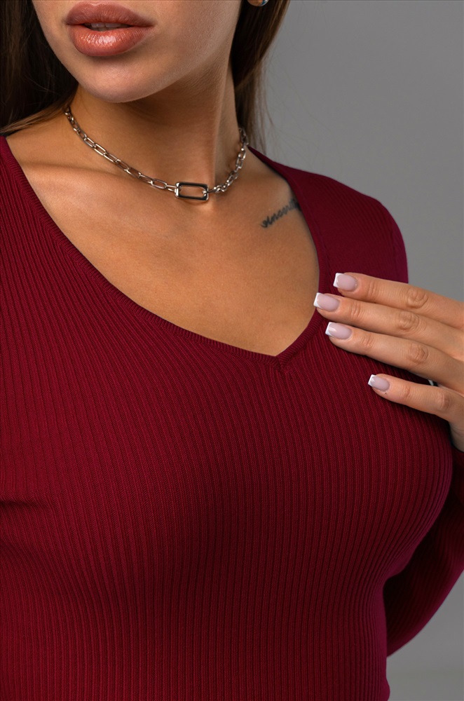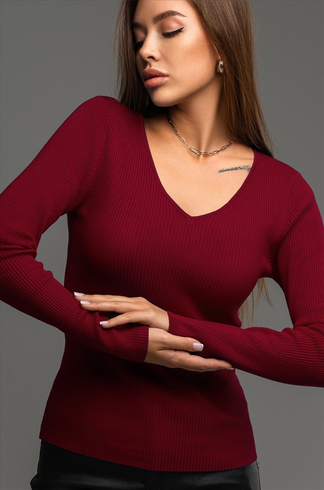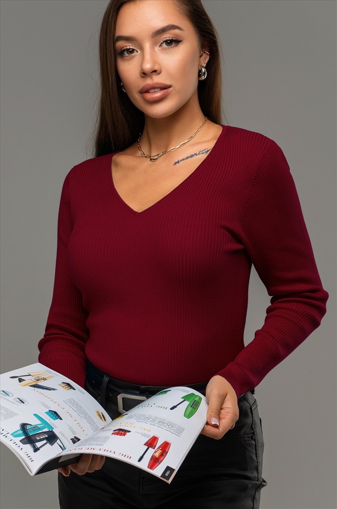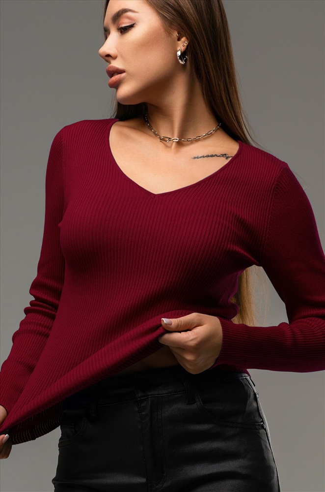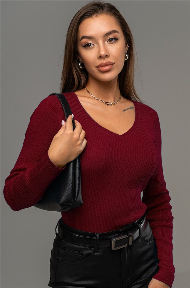 — однотонный бордовый джемпер подходит для встреч с друзьями или повседневных выходов.