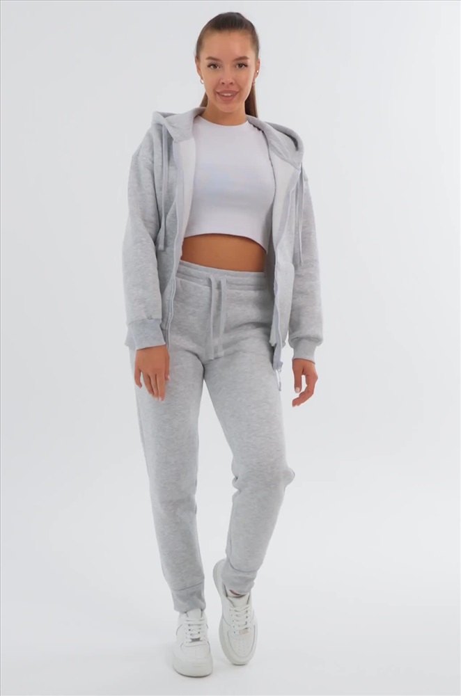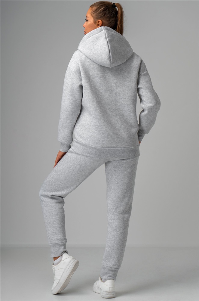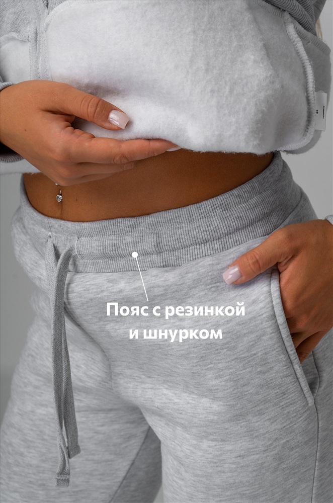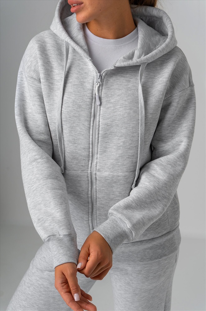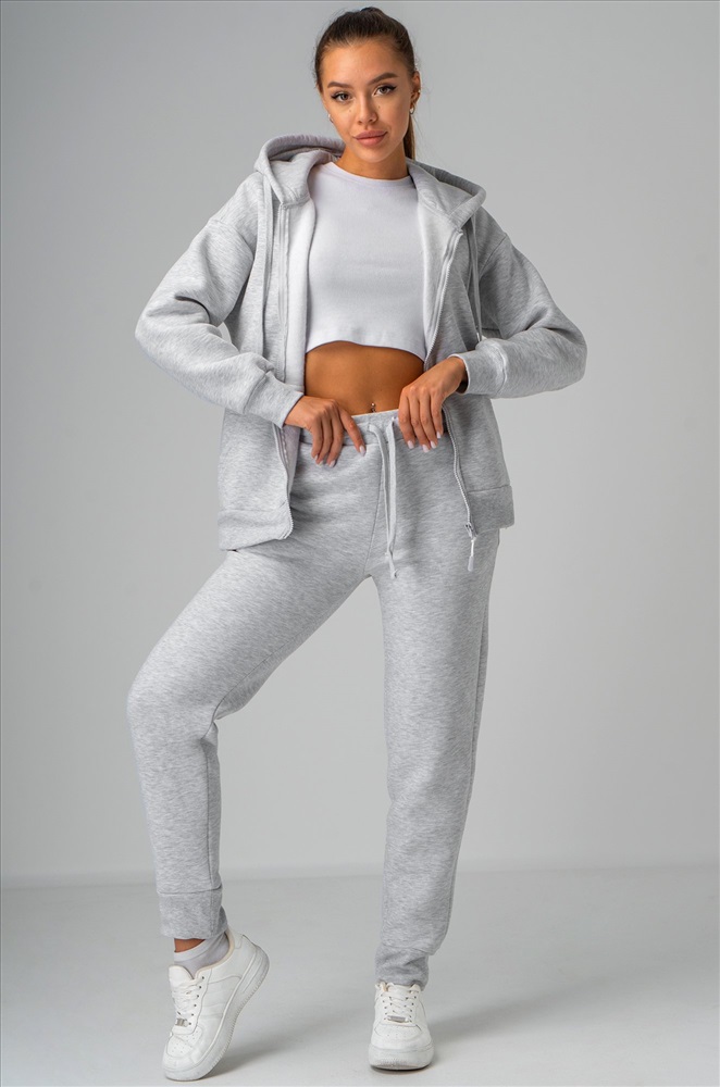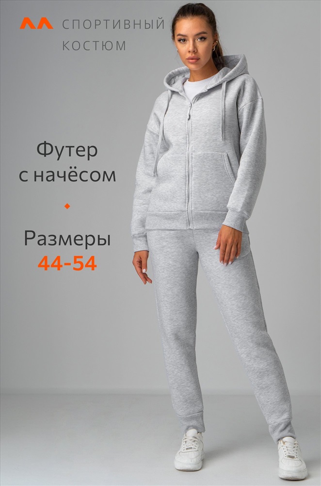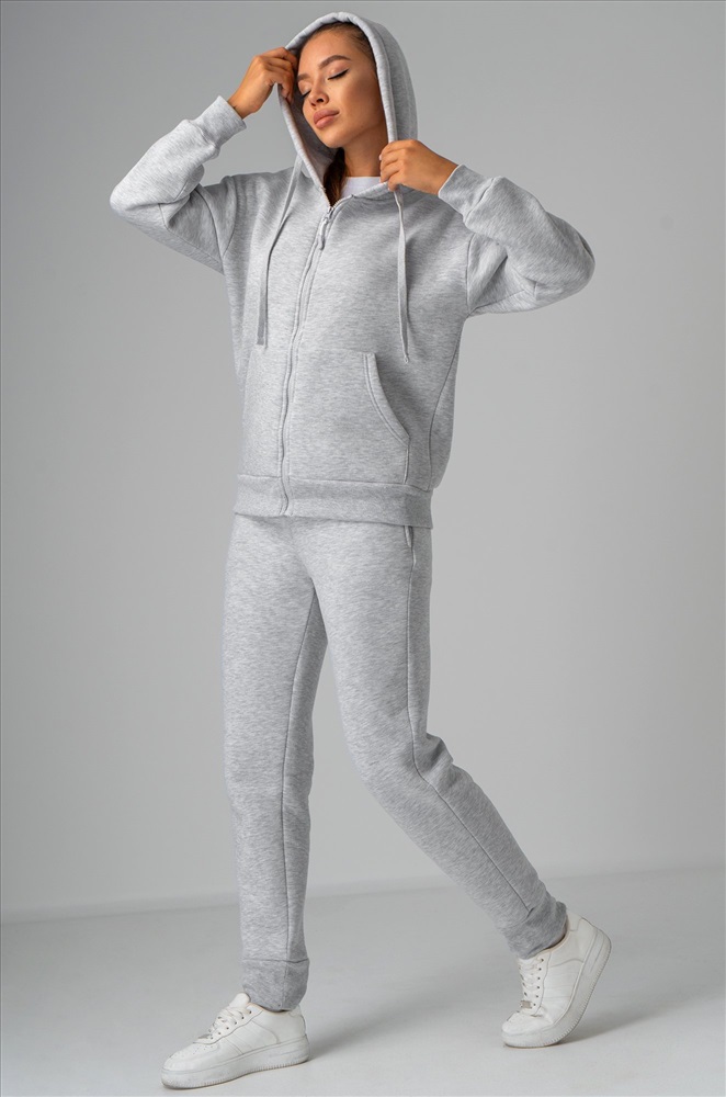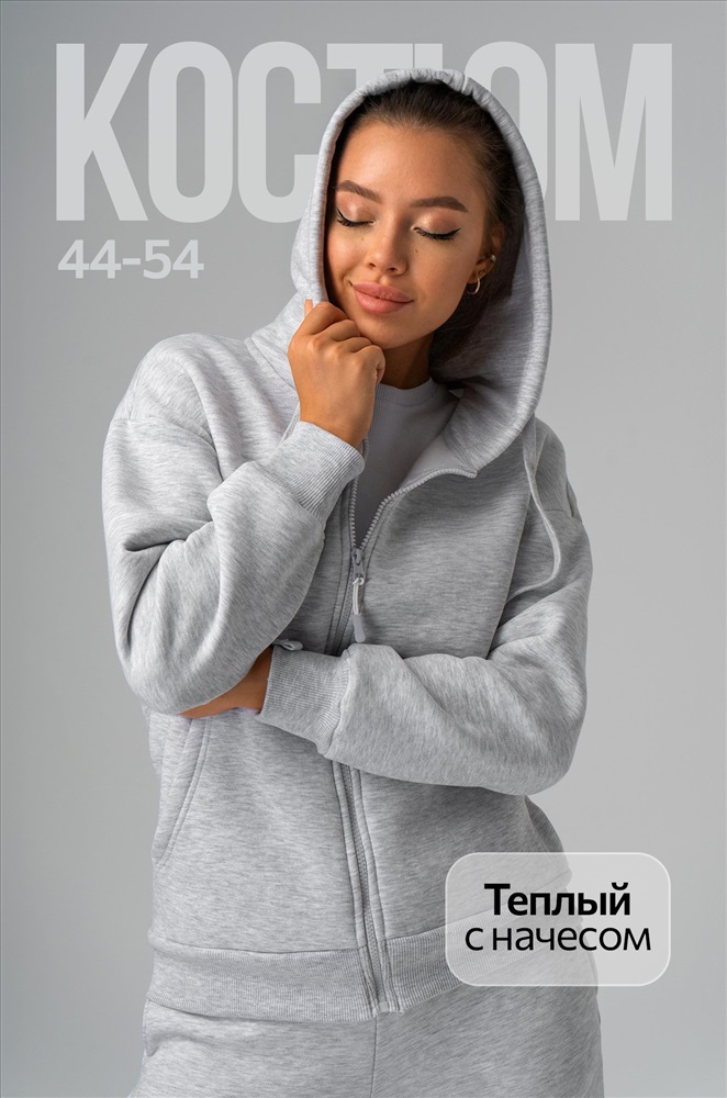 Женский теплый костюм с начесом — стильное и практичное решение для холодного времени года. В набор входят худи на молнии с капюшоном и удобные брюки-джоггеры.