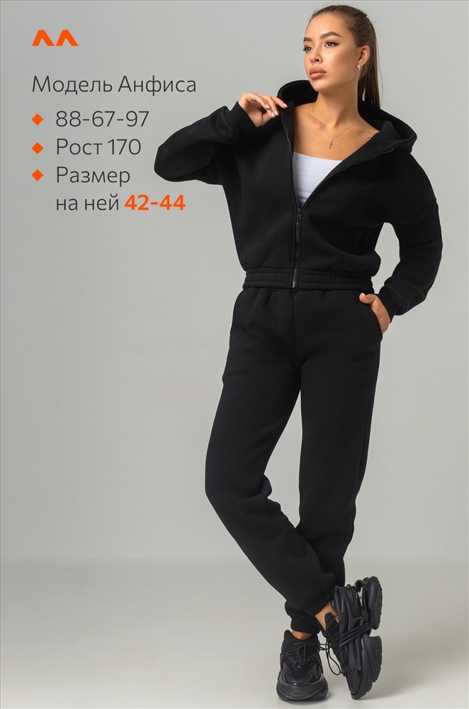 брюки: длина :101 см; ширина по бедрам:51 см. Размер 44-46: толстовка: длина:54 см; ширина:56 см; длина рукава внешняя:70 см; длина рукава внутренняя:44 см. брюки: длина :102 см; ширина по бедрам:52 см. Размер 46-48: толстовка: длина:57 см; ширина:58 см; длина рукава внешняя:71 см; длина рукава внутренняя:45 см. брюки: длина :103 см; ширина по бедрам:53 см. *замеры выборочные, могут незначительно отличаться. Комментарии к товару