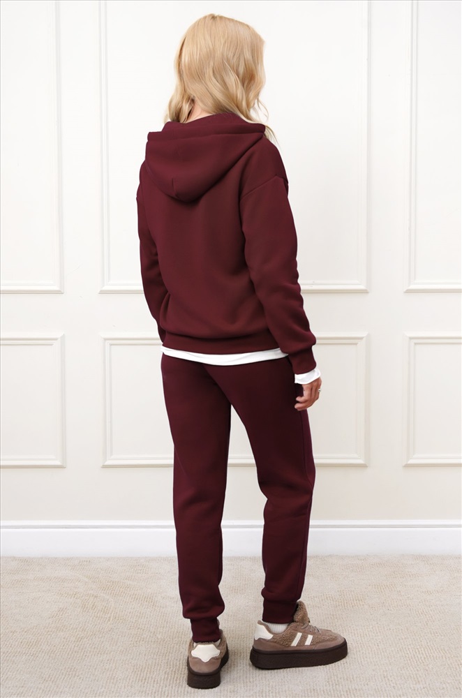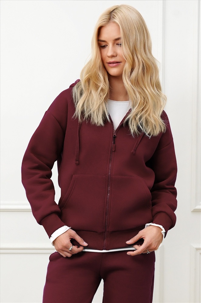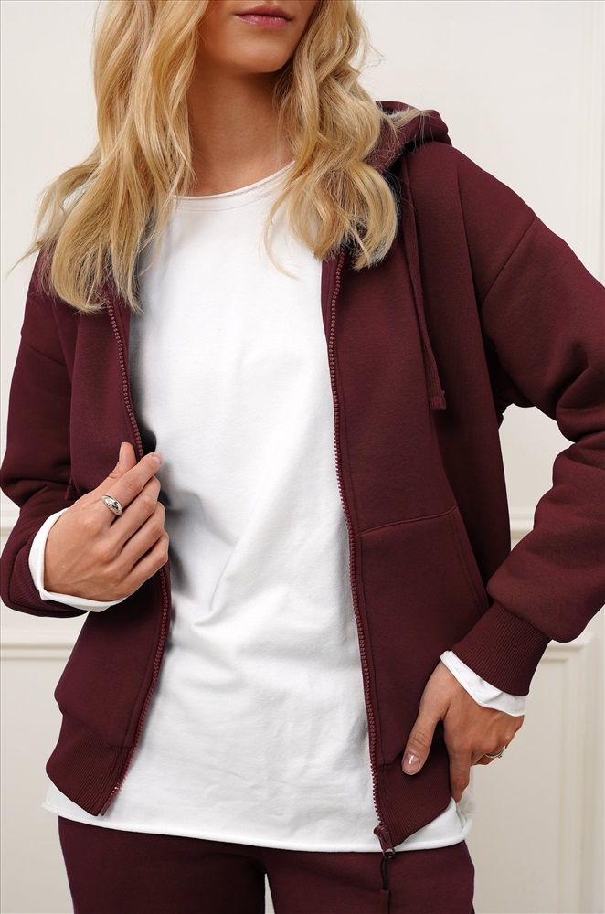 — благодаря добавлению полиэстера утепленный костюм двойка темно-красного цвета не теряет форму и цвет после стирок;
