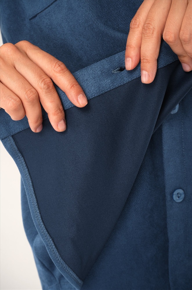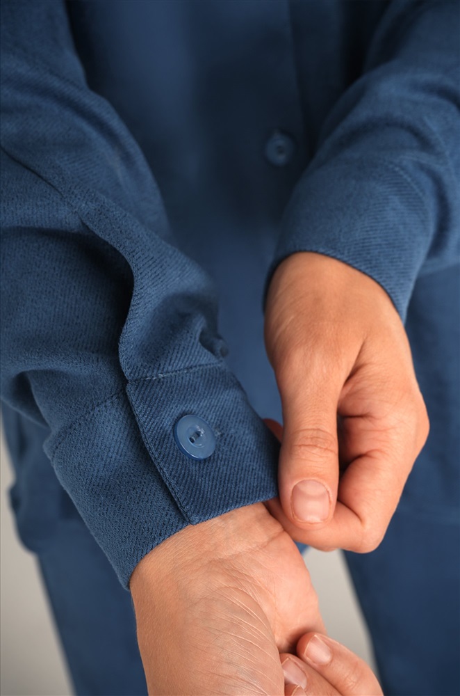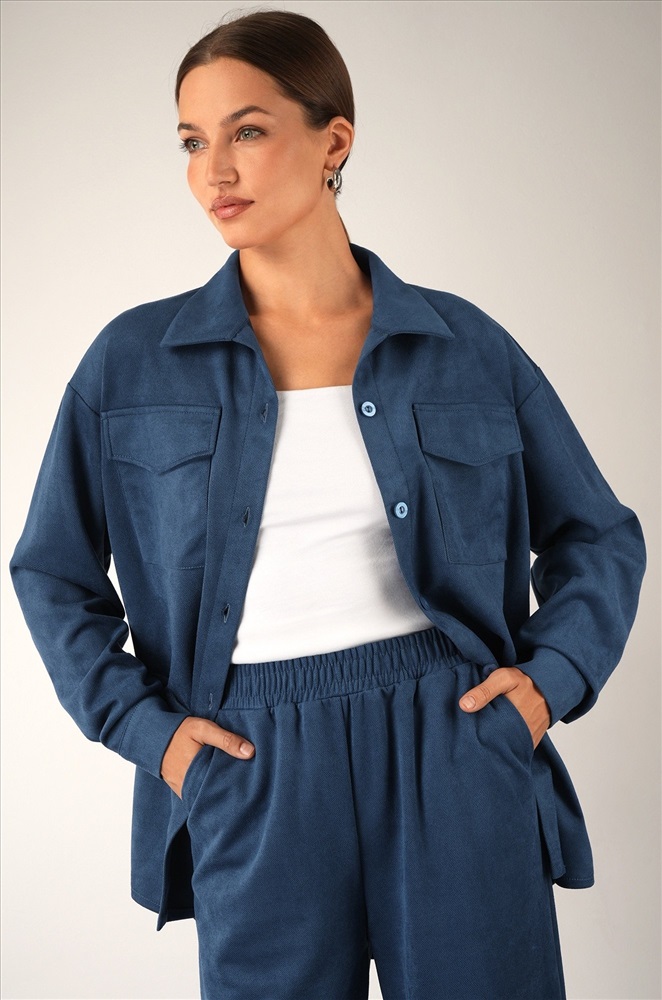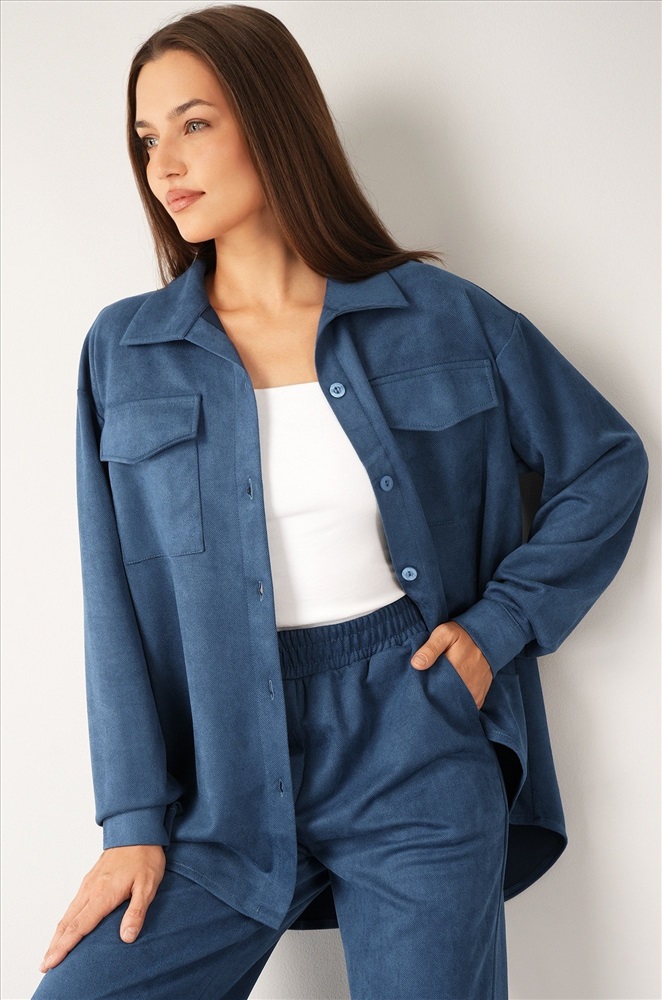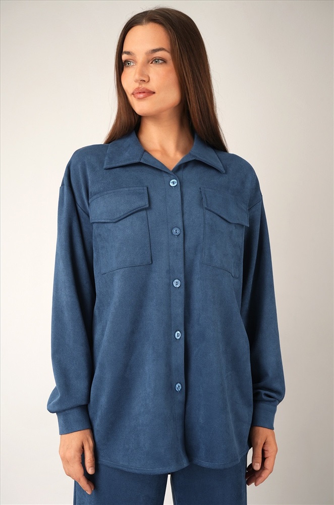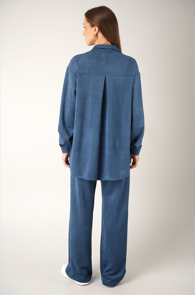 Преимущества: – плотный микровельвет, мягкий и приятный к телу; – удобный крой для свободы движений; – карманы для различных мелочей; – однотонный универсальный оттенок; – подходит для весны, осени и демисезонных образов. Брюки палаццо на резинке и рубашка оверсайз с нагрудными карманами создают женский комплект, который одинаково уместен для девушек и женщин и в офисе, и на прогулке. Синий вельветовый костюм будет незаменим как базовый, даря комфорт в осенний или весенний сезон. Рост модели 166 см, параметры: объем груди 77, объем талии 64, объем бедер 92. На ней размер 44-46.