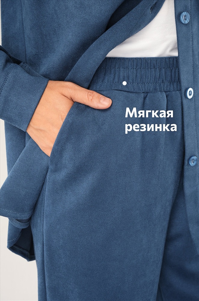 Стиль, в который легко влюбиться! Женский костюм с брюками в синем цвете — идеальный баланс уюта и элегантности. Костюм двойка покорит мягким вельветовым материалом и свободным кроем, в котором так приятно проводить каждый день.