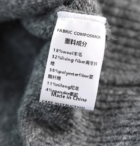 Состав: 18% шерсть, 32% переработанное волокно, 35% полиэстер, 11% нейлон, 4% спандекс.