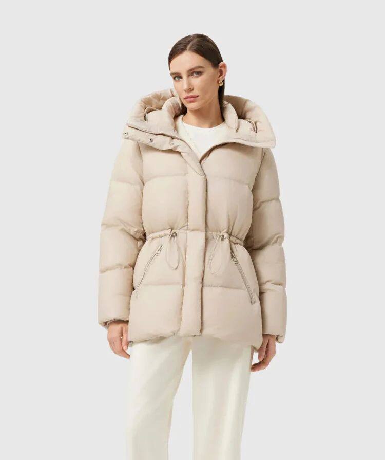 Материал: 82% нейлон, 18% спандекс,, наполнение 90% утиный пух, 10% перья