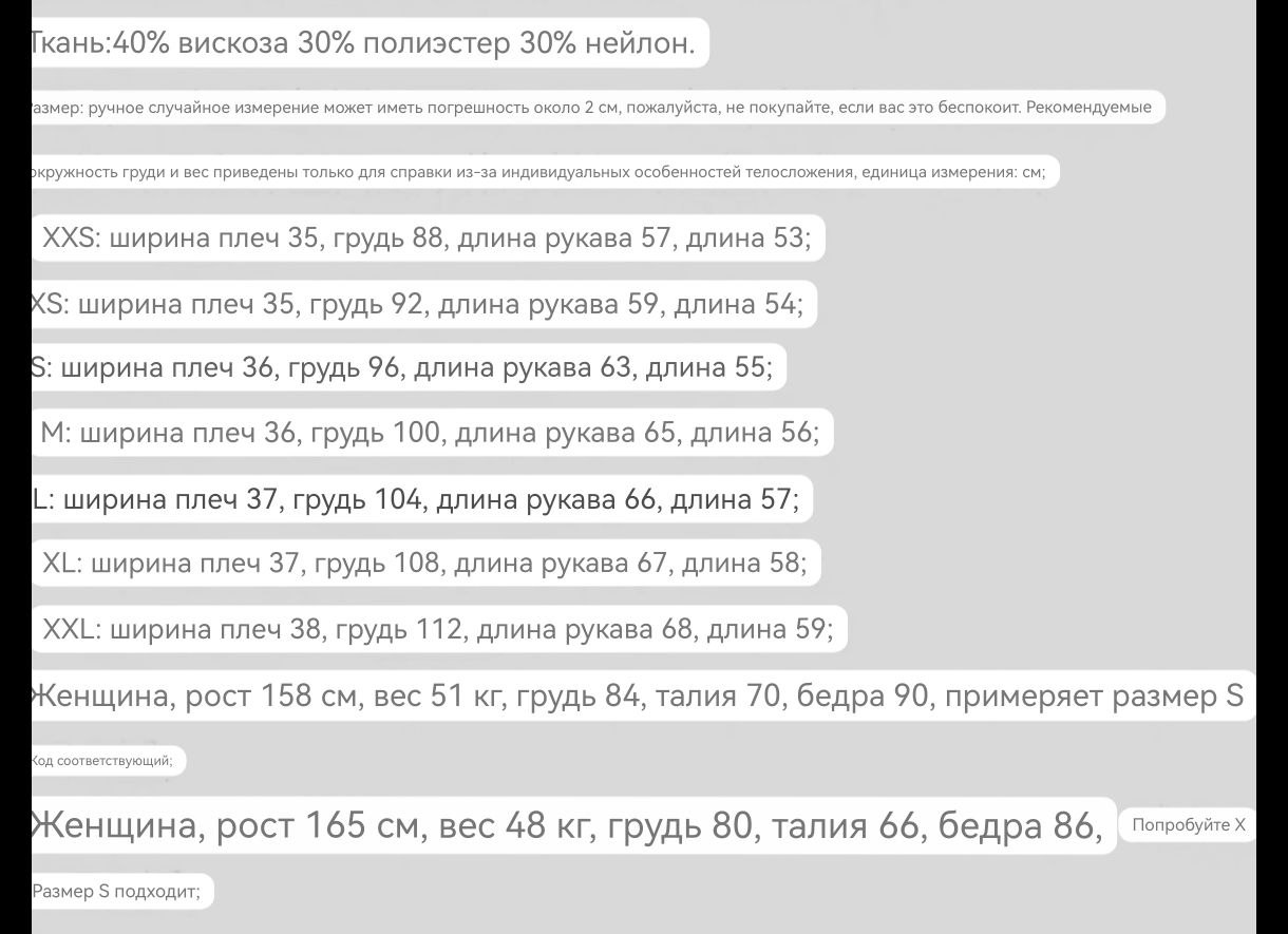 ПРЕЖДЕ, ЧЕМ СДЕЛАТЬ ЗАКАЗ, ОБЯЗАТЕЛЬНО ПРОЧТИТЕ ПРАВИЛА ЗАКУПКИ! Ваше участие означает согласие со всеми стандартными правилами для Участников на этом форуме и с правилами конкретно этой закупки. Наша группа в Telegram. Присоединяйтесь! УСЛОВИЯ ВЫКУПА: Орг. сбор 17% Минимальная сумма совместного заказа: 15 000 руб. Доставка Китай - Краснодар 13$/кг (тару делю на всех) Срок доставки 4-6 недель (точные сроки доставки зависят от загруженности таможни) Оплата в течении 1-2 дней после выставления счета При несвоевременной оплате большая вероятность того, что товар будет раскуплен (КОЛЛИЧЕСТВО ТОВАРА В ЭКСПОРТНЫХ МАГАЗИНАХ ОГРАНИЧЕНО) ОПЛАТА ТРАНСПОРТНЫХ РАСХОДОВ: 1.Стоимость доставки рассчитывается по приходу заказа, после взвешивания. 2. В случае неоплаты транспортных расходов заказ не выдается и приводит к ограничениям на участие в закупках 3 Оплата двое суток переводом на карту, на третьи сутки орг поднимается до 30%, далее участник попадает в ЧС. 4. Если Вы сами находите товар на сайтах taobao.com, 1688.com, pinduoduo, wechat присылайте мне ссылку, цвет, количество, стоимость и я все для вас выкуплю. ВАЖНО! Пересорт или брак: не является причиной для возврата товара Если вам не подошел размер, не понравилось качества материала и тд. - не является причиной для возврата товараТочные сроки доставки зависят от загруженности таможни! |