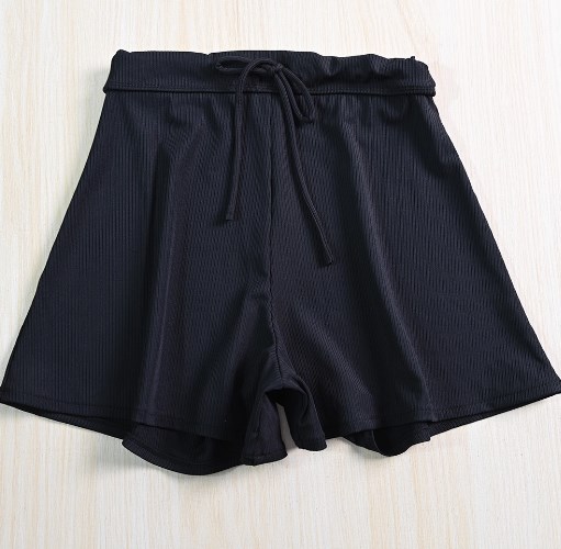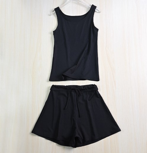 Женский спортивный комплект с трикотажным жилетом в рубчик и шортами на шнуровке