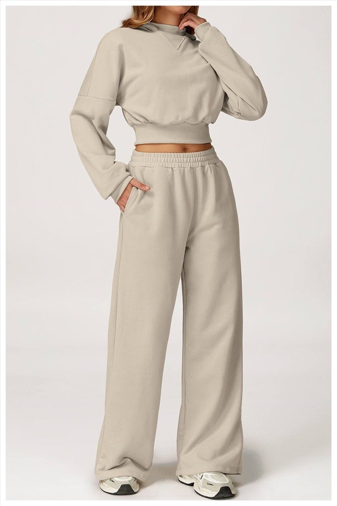 Укороченное худи с небольшим воротником стойкой и капюшоном + трендовые свободные штаны