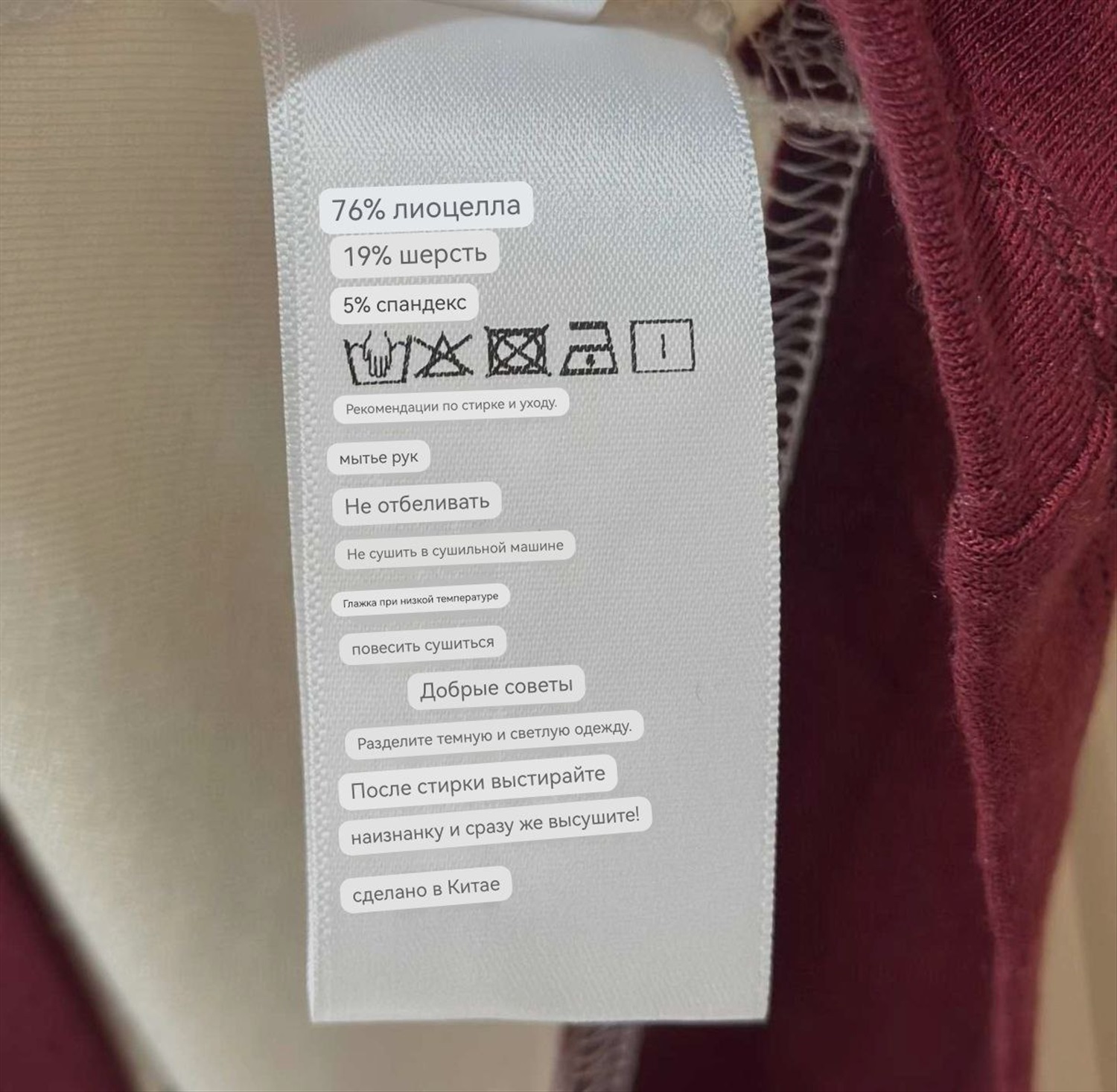 Материал: лиоцелл76%, шерсть19%, спандекс 5%