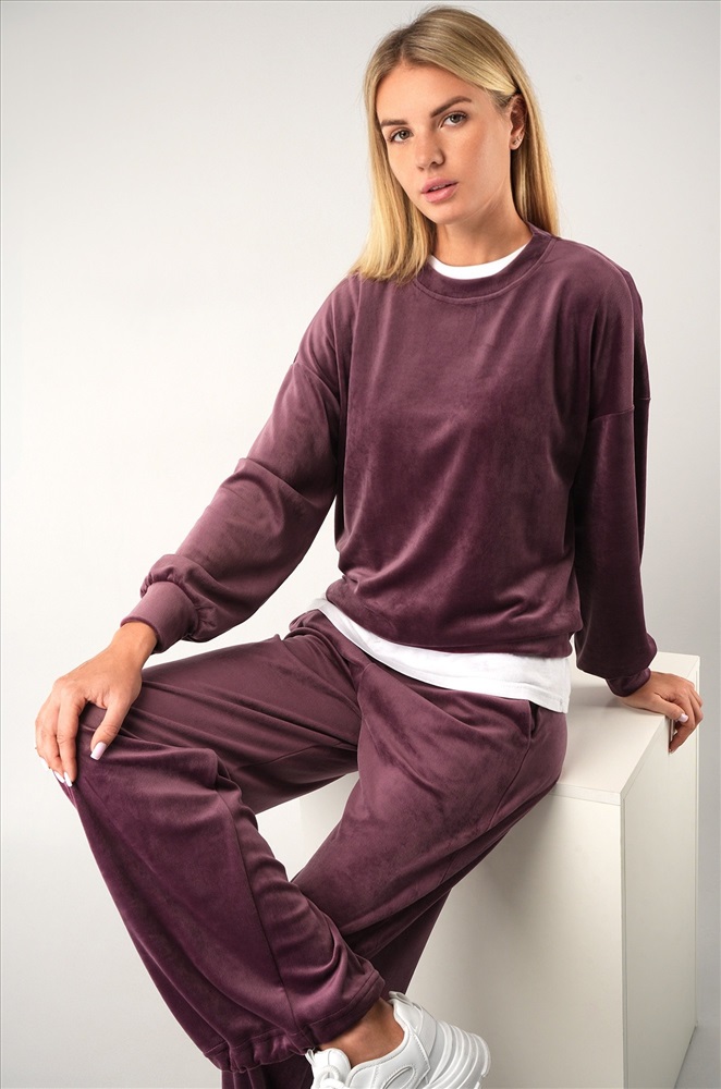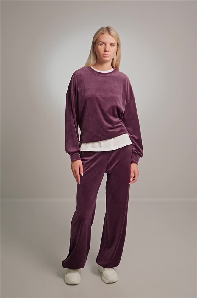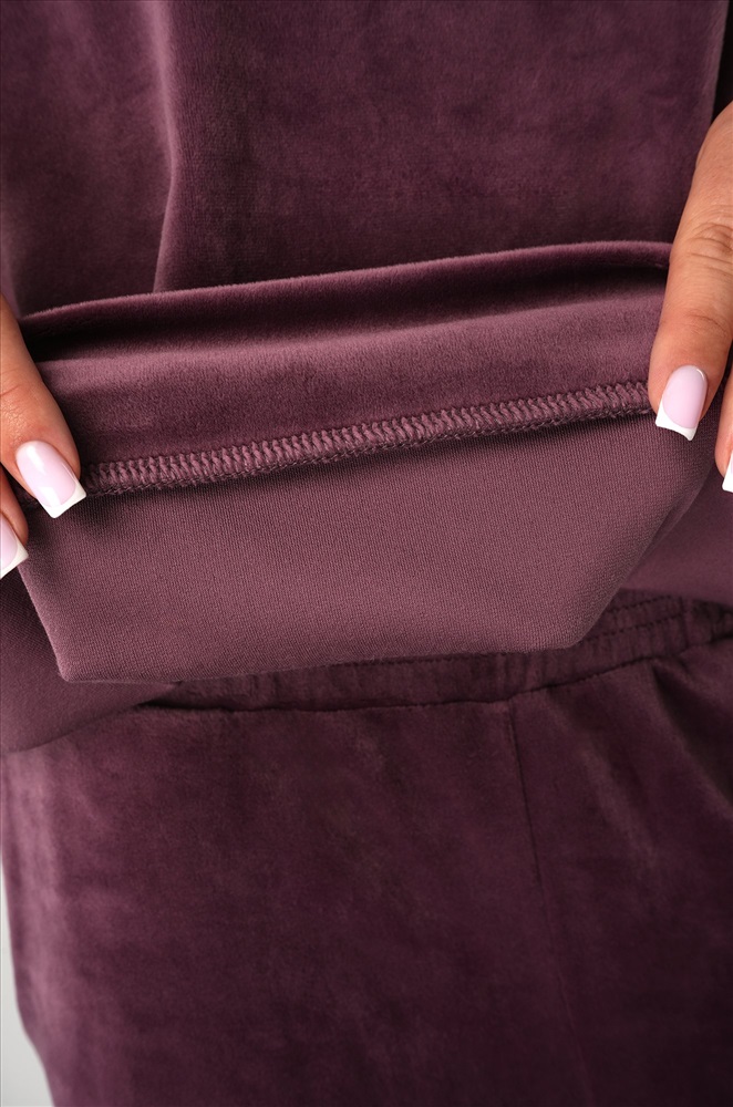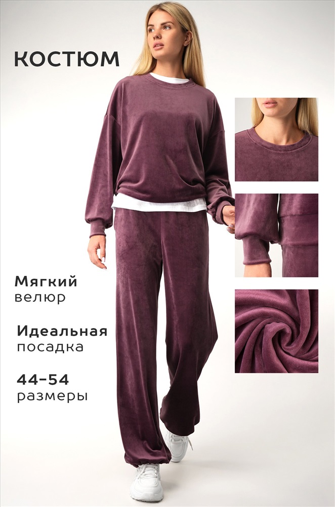 Преимущества: — велюровый костюм оверсайз подойдет на каждый день; — костюм с брюками выполнен из бархатного трикотажа с добавлением лайкры; — эластичный пояс и карманы для удобства; — костюм со штанами на резинке и утяжкой со стопперами по низу штанин смотрится стильно и расслабленно; — демисезонный трикотажный костюм — универсальный всесезонный вариант для женщин. Повседневный велюровый костюм с брюками имеет свободный прямой крой и удобен для дома и прогулок. Бархатный костюм подойдет для путешествий и домашнего уюта. Фиолетовый костюм идеален для осенних и весенних образов. Рост модели 177 см, параметры: объем груди 85, объем талии 66, объем бедер 90. На ней размер 44.