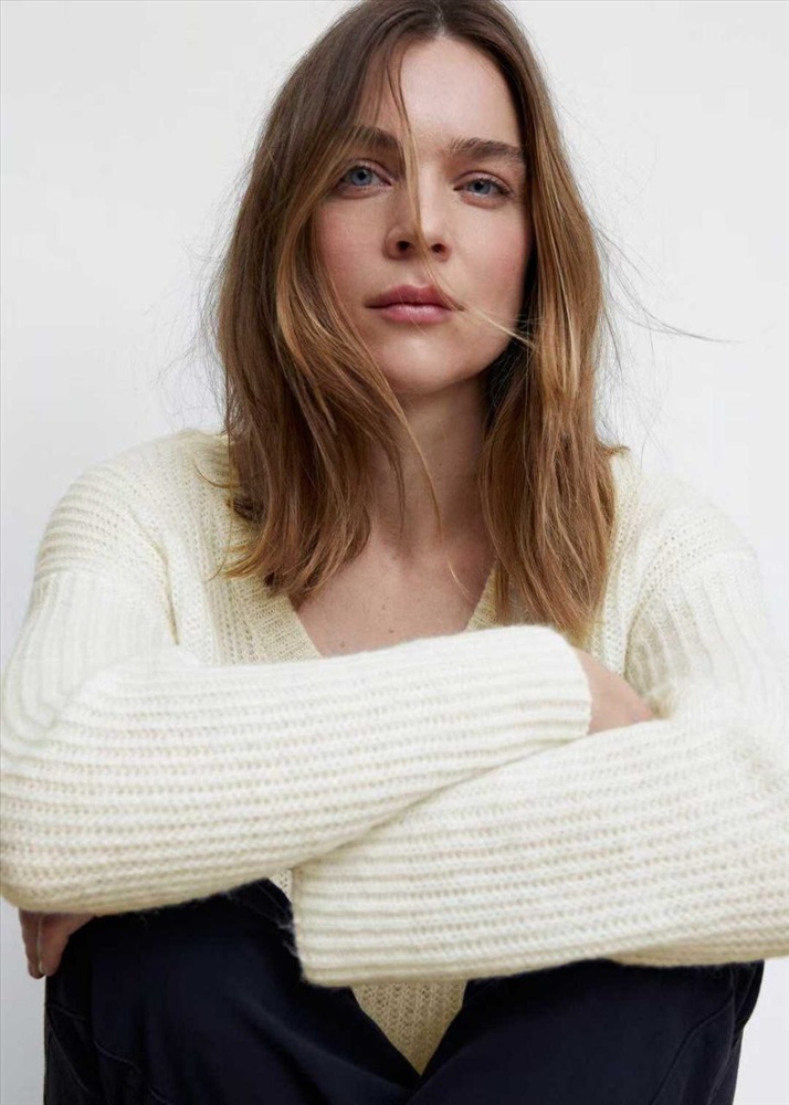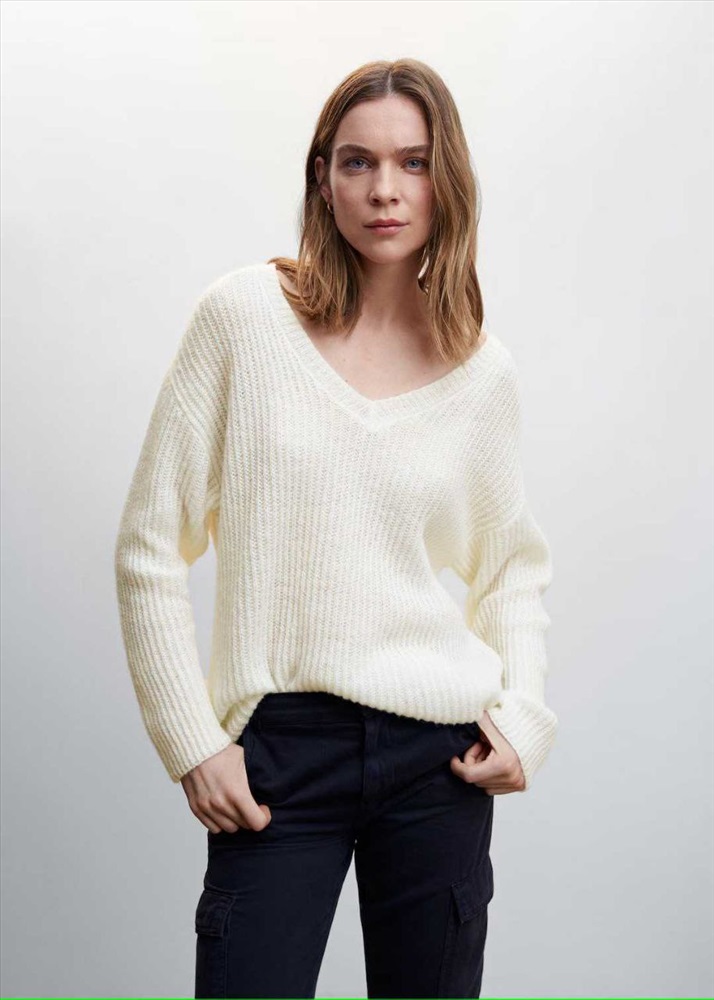 Женский вязаный пуловер Mang*o с V-образной горловиной