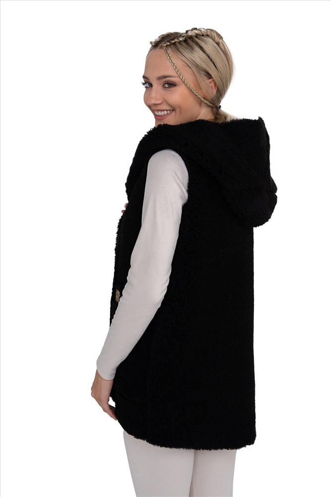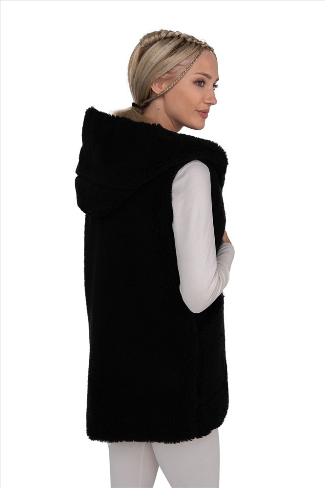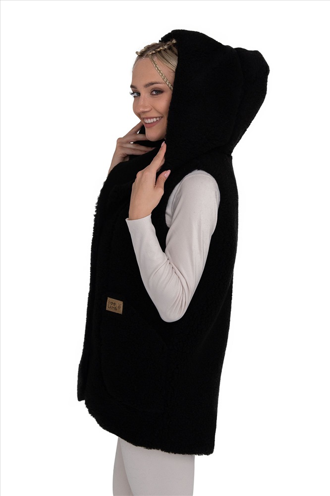 Жилет ЭКО с КАПЮШОНОМ черный