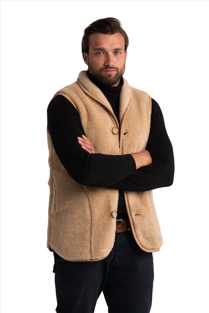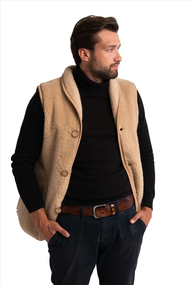 НОВИНКА! Универсальный для мужчин и женщин. Жилет на пуговицах выполнен из натуральной овечьей шерсти, прямой покрой, два варианта расцветок., Длина 75-85 см в зависимости от размера.