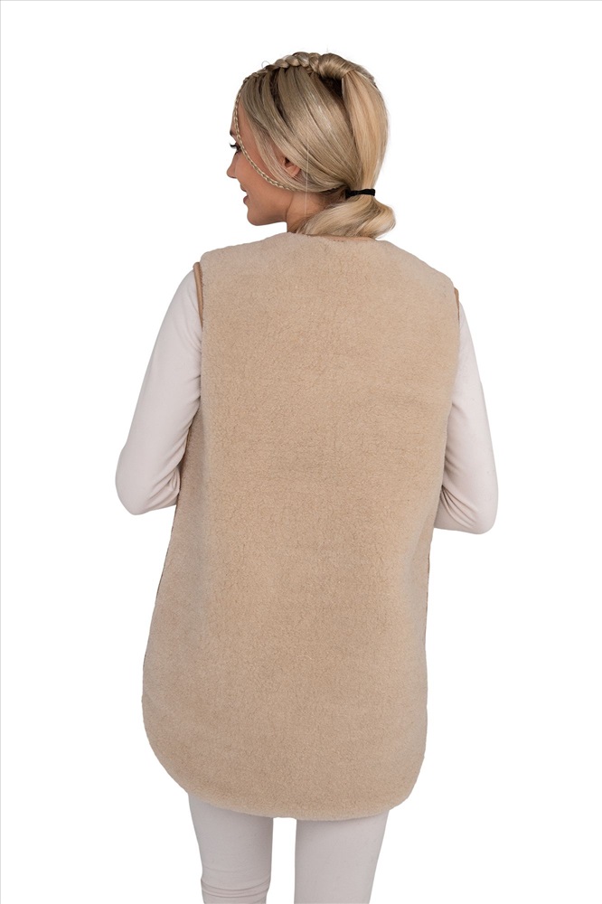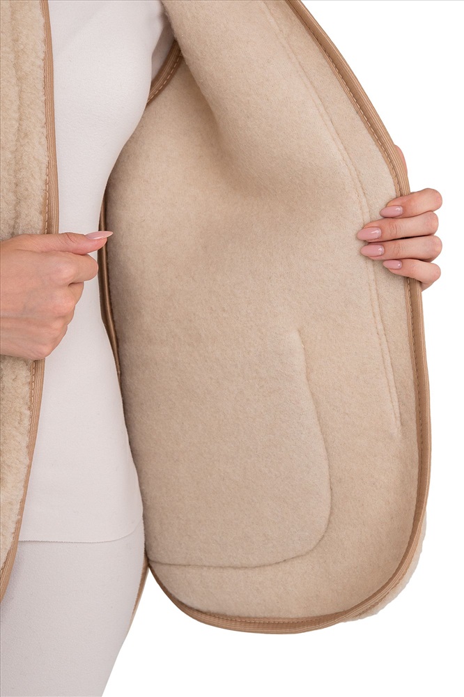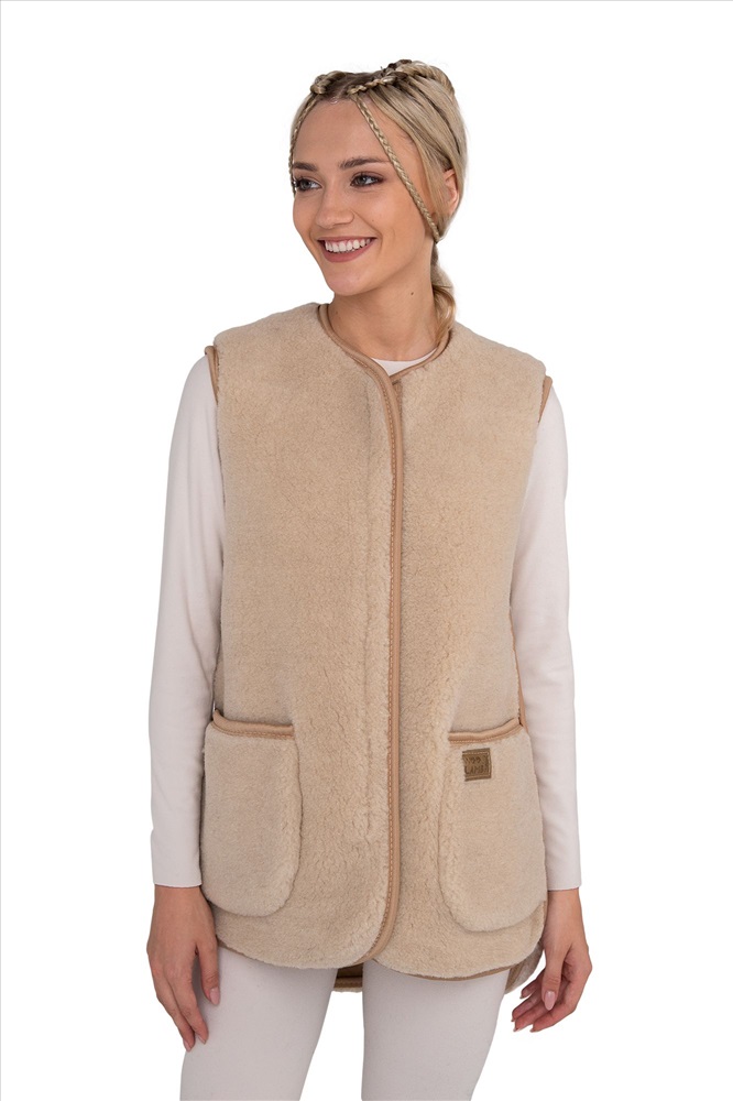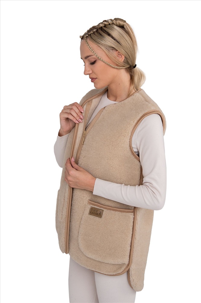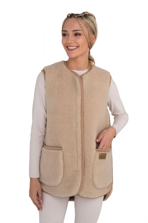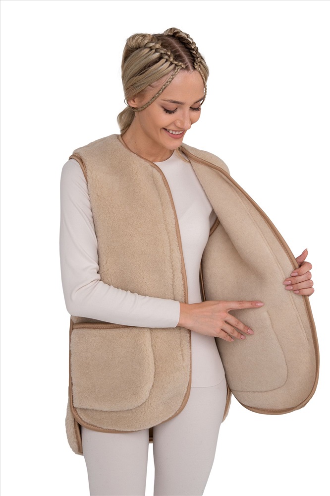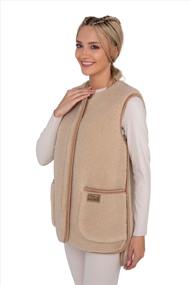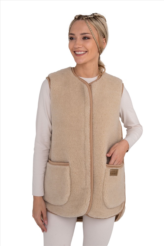 Застежка молния., Подходит для мужчин и женщин., Меховой жилет на молнии, без воротника с удлиненной спинкой. Отлично сидит на любой фигре, высота ворса 12 мм, изнутри меховой начес 2-3 мм. Жилет обработан по краю качественным плотным кантом, теплый и уютный. Подходит для повседневной носки., Терапевтическое воздействие жилета :, Массаж ворсинками шерсти овцы воздействует на нервные окончания, что повышает сопротивляемость организма болезням. Овечья шерсть известна своей теплотой. Однако изделия из нее более тяжелые, чем верблюжьи. Постоянно действующее тепло на очаг заболевания позволяет снизить боли и облегчить состояние больного при радикулитах., Оздоровительный эффект:, Жилет классического дизайна универсален для мужчин и женщин. Постоянное ношение изделия позволяет повысить иммунитет, снять напряжение в мышцах спины и ослабить боли. Рекомендуется для людей, страдающих сердечно-сосудистыми заболеваниями, позвоночными и простудными болезнями., Уход за изделием:, Жилет шерстяной - отличный помощник и лекарь. Он достаточно долго прослужит вам, но при этом потребует некоторых усилий. Шерсть овцы нельзя стирать в горячей воде, следовательно, жилет стирают вручную. Для этого используются специальные средства. Гладить и отбеливать запрещается. Высушивать жилет классик следует на плоской поверхности. Ни в коем случае нельзя сушить на солнце или батареи. Рекомендации по применению: Использовать ежедневно., Наши изделия созданы из новейшего, уникального, разработанного специально для нас, материала на основе натуральной шерсти. Невероятно мягкий, легкий, пластичный он подарит тепло и комфорт своей обладательнице. Стильный фасон отвечает всем современным тенденциям моды!, Все наши лекала уникальны и не имеют аналогов, разработаны на собственном швейном производстве фабрики WOOLLAMB, это обеспечивает отличную посадку и комфортное использование для любой фигуры., Благодаря высокому содержанию ланолина, шерсть обладает высокими оздоравливающими и согревающими свойствами, благоприятно влияет на весь организм в целом! Одежда из натуральной шерсти подарит легкость, комфорт и сухое тепло рожденное природой!