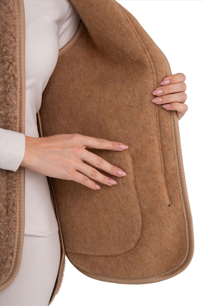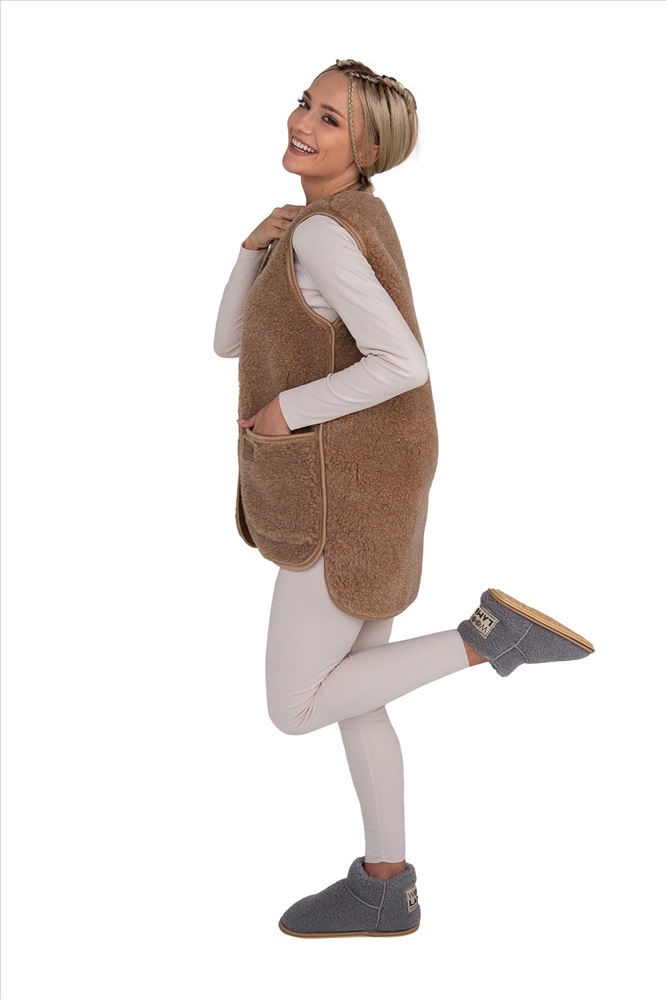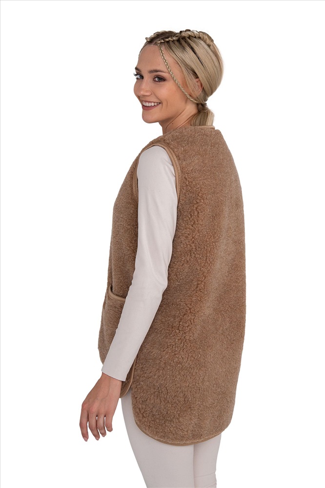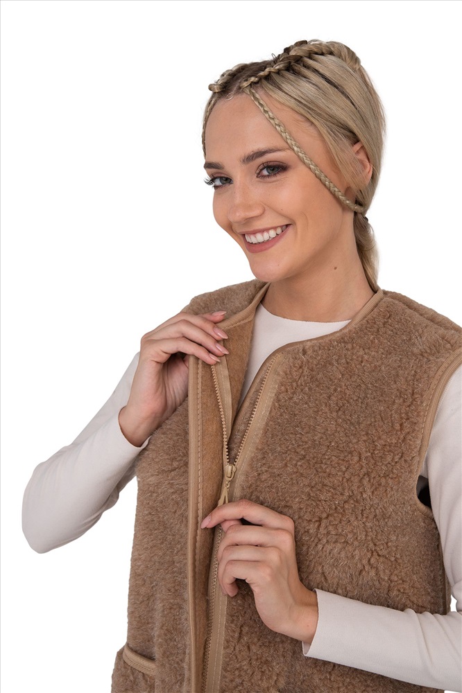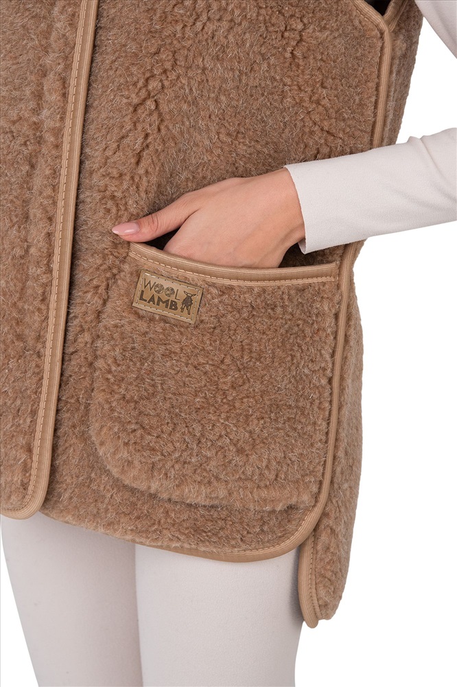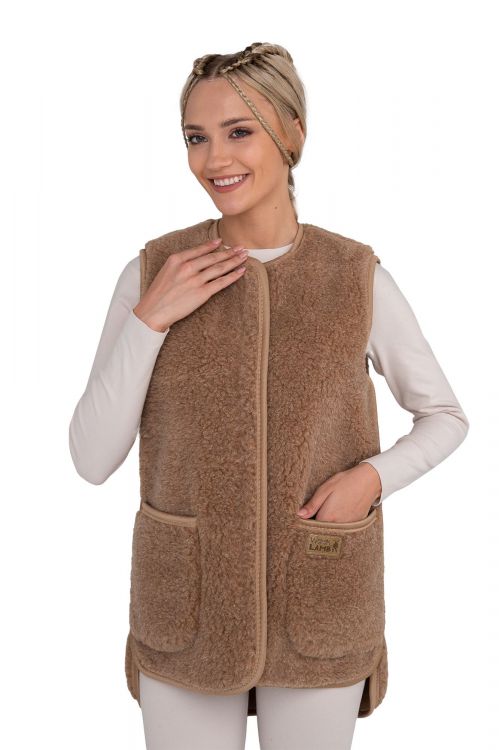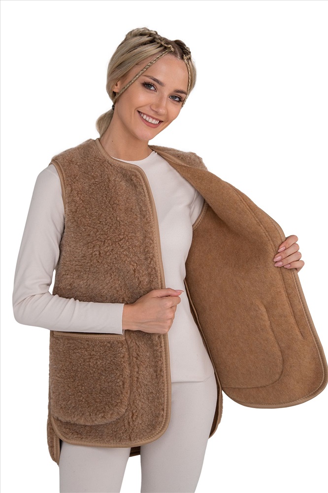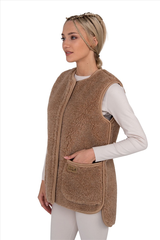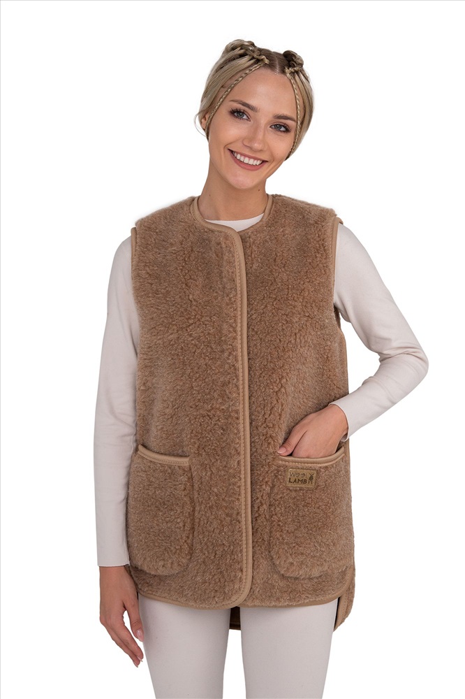 Застежка молния., Подходит для мужчин и женщин., Меховой жилет на молнии, без воротника с удлиненной спинкой. Отлично сидит на любой фигре, высота ворса 12 мм, изнутри меховой начес 2-3 мм. Жилет обработан по краю качественным плотным кантом, теплый и уютный. Подходит для повседневной носки., Терапевтическое воздействие жилета :, Массаж ворсинками шерсти овцы воздействует на нервные окончания, что повышает сопротивляемость организма болезням. Овечья шерсть известна своей теплотой. Однако изделия из нее более тяжелые, чем верблюжьи. Постоянно действующее тепло на очаг заболевания позволяет снизить боли и облегчить состояние больного при радикулитах., Оздоровительный эффект:, Жилет классического дизайна универсален для мужчин и женщин. Постоянное ношение изделия позволяет повысить иммунитет, снять напряжение в мышцах спины и ослабить боли. Рекомендуется для людей, страдающих сердечно-сосудистыми заболеваниями, позвоночными и простудными болезнями., Уход за изделием:, Жилет шерстяной - отличный помощник и лекарь. Он достаточно долго прослужит вам, но при этом потребует некоторых усилий. Шерсть овцы нельзя стирать в горячей воде, следовательно, жилет стирают вручную. Для этого используются специальные средства. Гладить и отбеливать запрещается. Высушивать жилет классик следует на плоской поверхности. Ни в коем случае нельзя сушить на солнце или батареи. Рекомендации по применению: Использовать ежедневно., Наши изделия созданы из новейшего, уникального, разработанного специально для нас, материала на основе натуральной шерсти. Невероятно мягкий, легкий, пластичный он подарит тепло и комфорт своей обладательнице. Стильный фасон отвечает всем современным тенденциям моды!, Все наши лекала уникальны и не имеют аналогов, разработаны на собственном швейном производстве фабрики WOOLLAMB, это обеспечивает отличную посадку и комфортное использование для любой фигуры., Благодаря высокому содержанию ланолина, шерсть обладает высокими оздоравливающими и согревающими свойствами, благоприятно влияет на весь организм в целом! Одежда из натуральной шерсти подарит легкость, комфорт и сухое тепло рожденное природой!