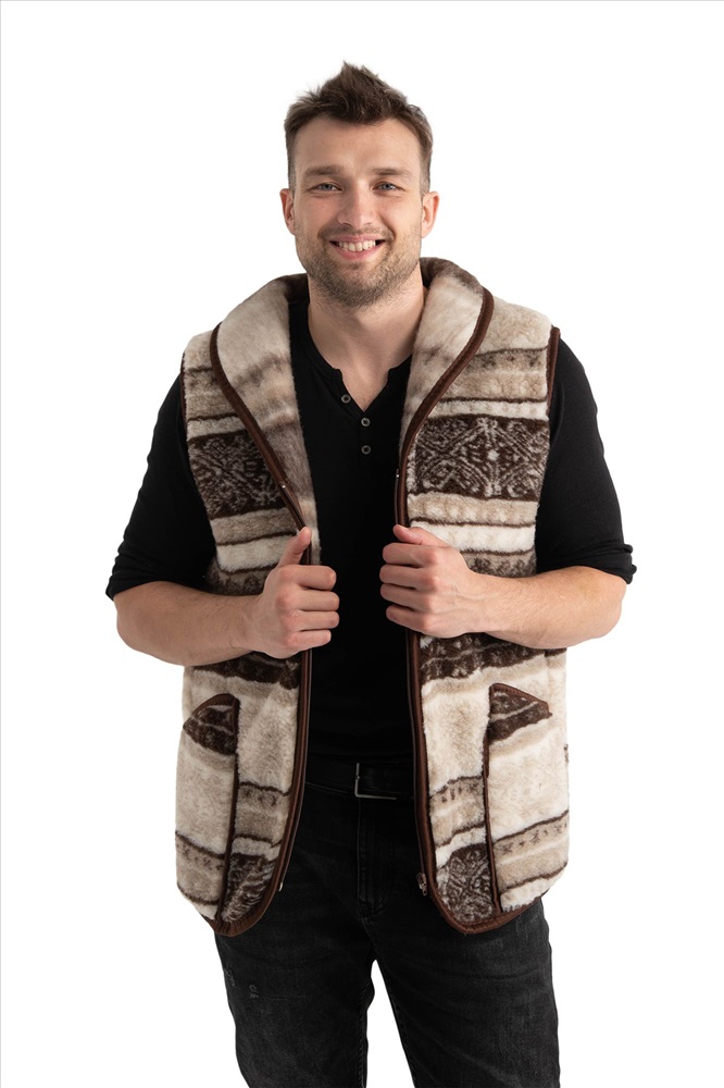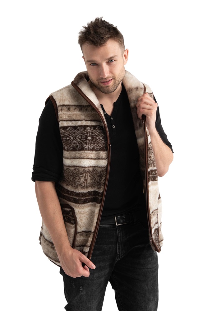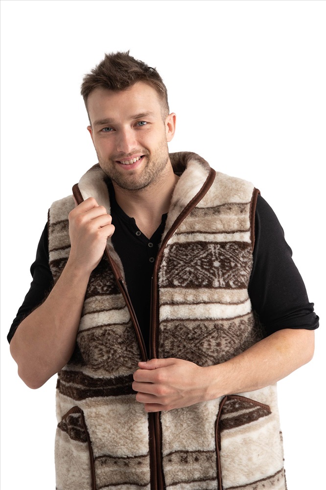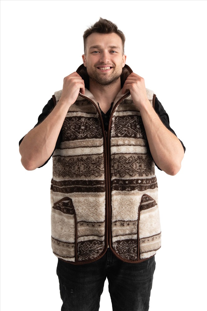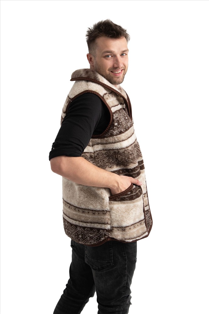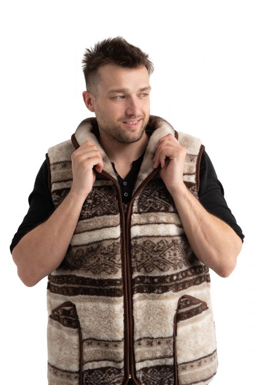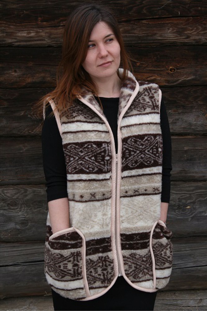 Меховой жилет на молнии с аккуратным воротничком имеет два накладных кармана в центре, в которых удобно хранить мелочи или греть руки. Окантовка пройм, низа, молнии и карманов не позволит краям жилета быстро затираться. Шерсть тонкорунных овец мериноса практически «не скатывается». Изделия из нее можно стирать вручную, соблюдая комфортную температуру для шерсти. После высыхания овечья шерсть не теряет своей формы., Согревают шерстяные изделия выше всяческих похвал. Натуральная овечья шерсть создает эффект «сухого тепла», пропуская воздух к телу и впитывая до 40% влаги от собственного веса. Такое свойство шерсти позволяет носить жилет даже в жаркую погоду, как это делают, например, коренные жители Африки., Овечья шерсть полностью гиппоаллергенна. Многократно доказано, что она также может обезвреживать токсины, которые выходят у человека вместе с потом и заживлять микротрещинки на коже, благодаря жировому веществу Ланолин., Заботиться о здоровье и хорошо выглядеть возможно в одежде от WOOLLAMB !