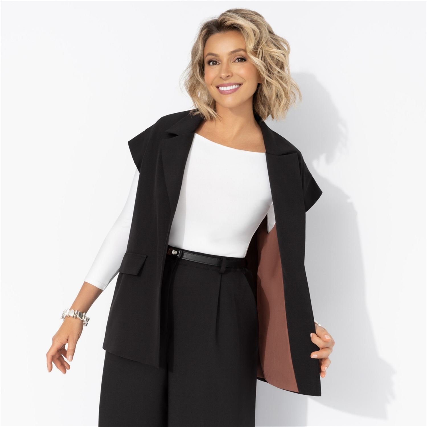 Состав: «Барби», «ниагара» (60% п/э, 37% вискоза, 3% спандекс) Плотность ткани: Плотная Тип ткани: Текстиль Вид застежки: Пуговица/-ы Дополнительный цвет ткани: Коричневый Карманы: Нет Основной цвет ткани: Черный Отрезная талия: Нет Подклад: Есть Резинка по талии: Нет Рисунок/раппорт: Нет, все изделия идентичны Сезон: Круглогодичный Силуэт: Прямой Стиль: Деловой Параметры модели на фото: