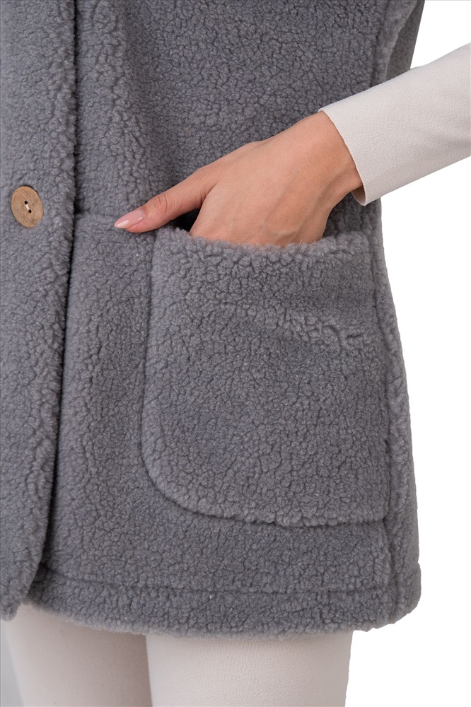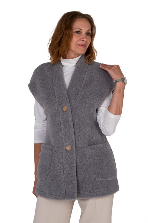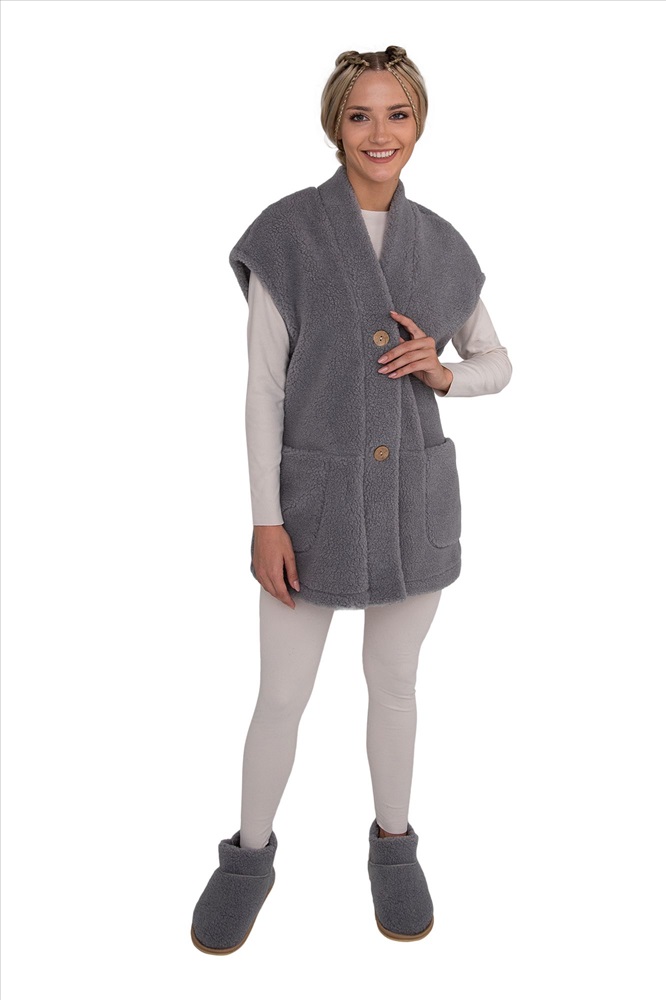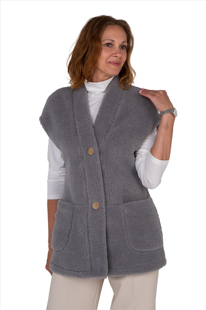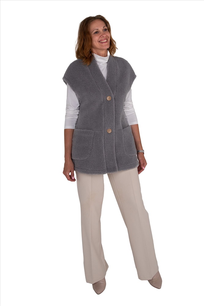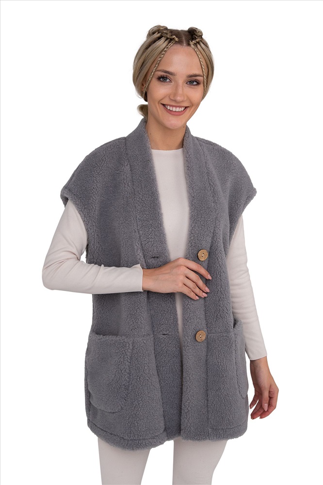 Указаны замеры готового изделия. Размеры всех изделий соответствуют российским (ГОСТ), с учетом запаса на свободу облегания 6-10 см., Новинка! Женский меховой жилет на пуговицах из натуральной овечьей шерсти. Мягкий, теплый, пластичный с идеальной посадкой на женскую фигуру! Жилет можно использовать как верхний и средний слой одежды, для улицы, дома и офиса!Удобные накладные карманы, приспущенный рукав реглан, качественный пошив, хорошие лекала и современные расцветки сделают ваш образ максимально комфортным и стильным., Наши изделия созданы из новейшего, уникального, разработанного специально для нас, материала на основе натуральной шерсти. Невероятно мягкий, легкий, пластичный он подарит тепло и комфорт своей обладательнице. Стильный фасон отвечает всем современным тенденциям моды!, Все наши лекала уникальны и не имеют аналогов, разработаны на собственном швейном производстве фабрики WOOLLAMB, это обеспечивает отличную посадку и комфортное использование для любой фигуры., Благодаря высокому содержанию ланолина, шерсть обладает высокими оздоравливающими и согревающими свойствами, благоприятно влияет на весь организм в целом! Одежда из натуральной шерсти подарит легкость, комфорт и сухое тепло рожденное природой!, Уход за изделиями максимально прост, стирка ручная со средствами для шерсти, или сухая химчистка, при необходимости можно отпарить паровым утюгом.