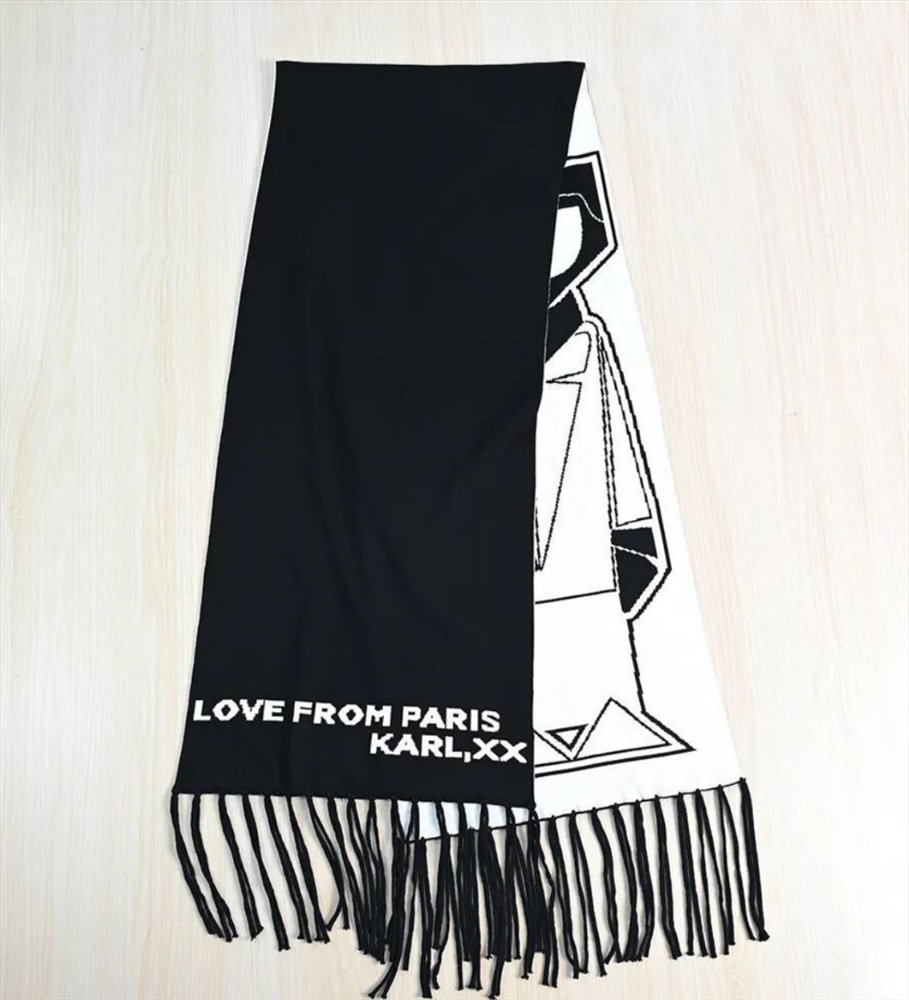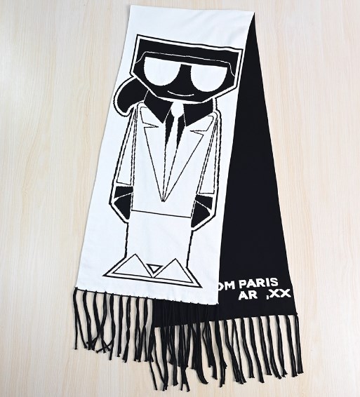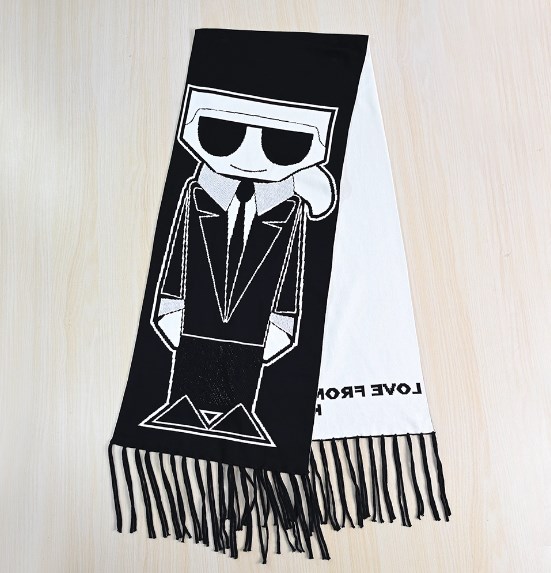 Зимний теплый шарф из окрашенной пряжи с вышитым рисунком мультяшного кота KARL LAGERFEL*D ОРИГИНАЛ! 😎