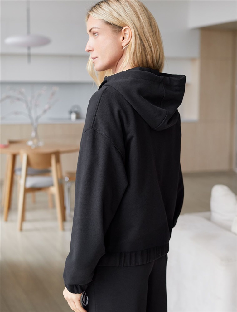 Плотность: 320 Г/м2 Размер товара на первом фото: 42 Уютное и стильное зип худи черного цвета на молнии и с капюшоном — идеальный выбор для создания модного повседневного образа в прохладную погоду. Выполнено из эластичного футера трехнитки, натуральный материал дарит комфортное ощущение на протяжении всего дня и отличную воздухопроницаемость. Модель дополнена вышитым логотипом бренда и боковыми карманами. Капюшон со шнуром, резинка по низу и манжеты на рукавах придают джемперу комфорт. Практичная молния делает худи удобным для быстрого переодевания и добавляет нотку спорт шика вашему стилю. Свободный крой подходит для девушек и женщин с фигурой плюс сайз, при этом подчеркивая достоинства и современный образ обладательницы этого спортивного джемпера. Зипка гармонично сочетается с джинсами, брюками или леггинсами, помогая легко составить как расслабленный городской аутфит, так и актуальный спортивный лук для прогулок или встреч с друзьями. Универсальность модели позволяет вписать ее в любой гардероб — она станет базовой вещью для тех, кто ценит практичность вместе с модными тенденциями. Комментарии к товару